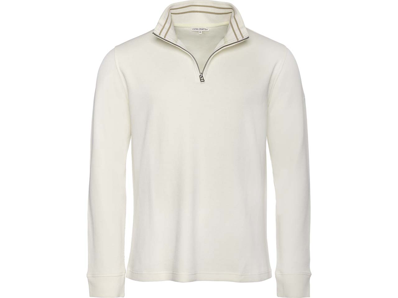 Hier treffen höchster Tragekomfort und modischer Style aufeinander! Der GOTS-zertifizierte Troyer aus Bio-Baumwolle überzeugt mit French-Rib-Stoff und einer perfekten Passform. Der halbe Reißverschluss vorne ermöglicht verschiedene Trageweisen. Dank Stehkragen sind Herren bei Wind und kühleren Temperaturen geschützt.