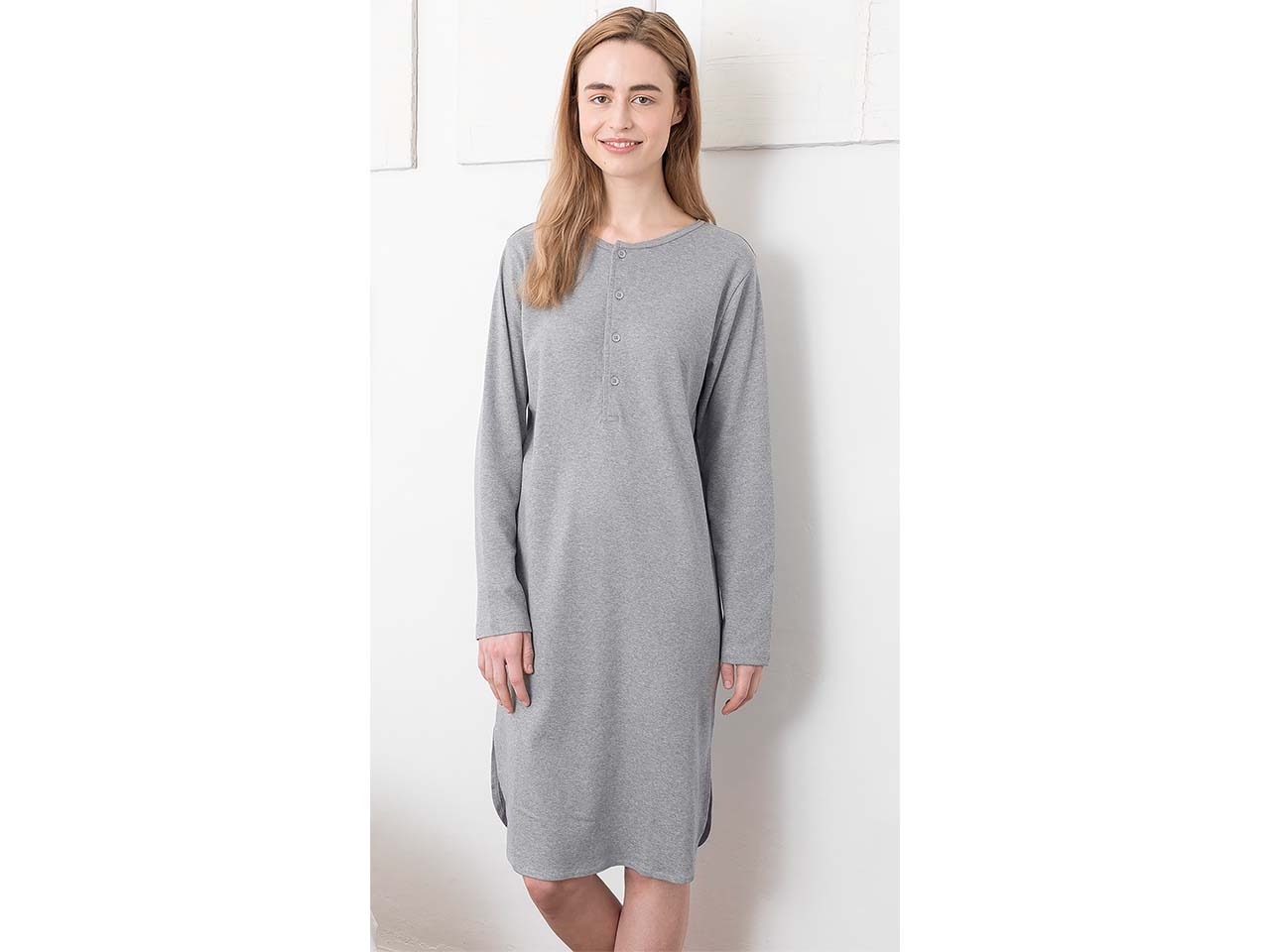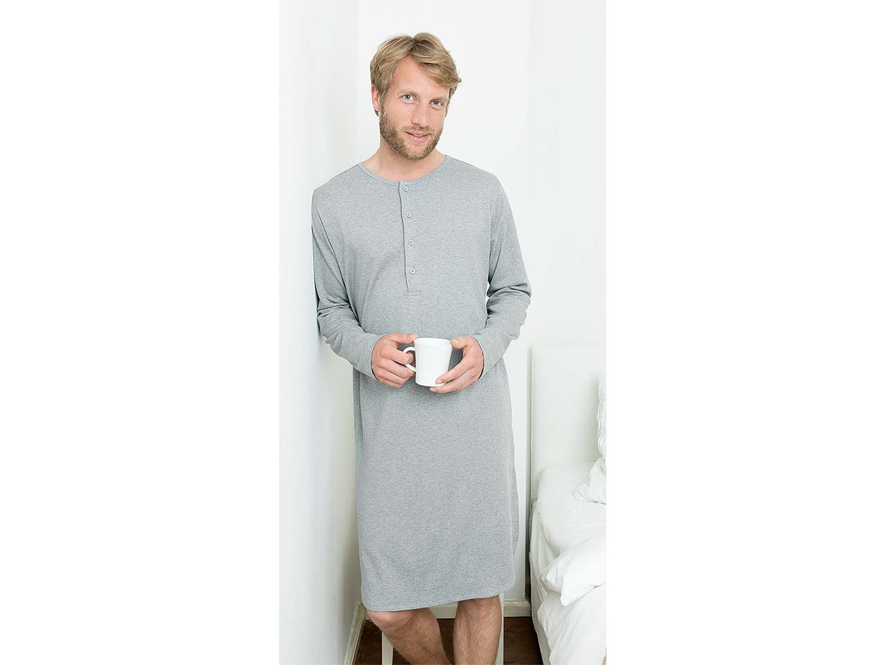 Klassisches Langarm-Nachthemd im zeitlosen Retro-Look! Höchster Tragekomfort entsteht durch die GOTS-zertifizierte Bio-Baumwolle in geschmeidiger Interlock-Jersey-Qualität, die sich angenehm weich auf der Haut anfühlt. Das Unisex-Nachthemd hat einen weiten Rundhalsausschnitt mit langer Vierknopfleiste, einen abgerundeten Saum mit Seitenschlitzen und Ärmelabschlüsse mit Doppelnahtsaum.