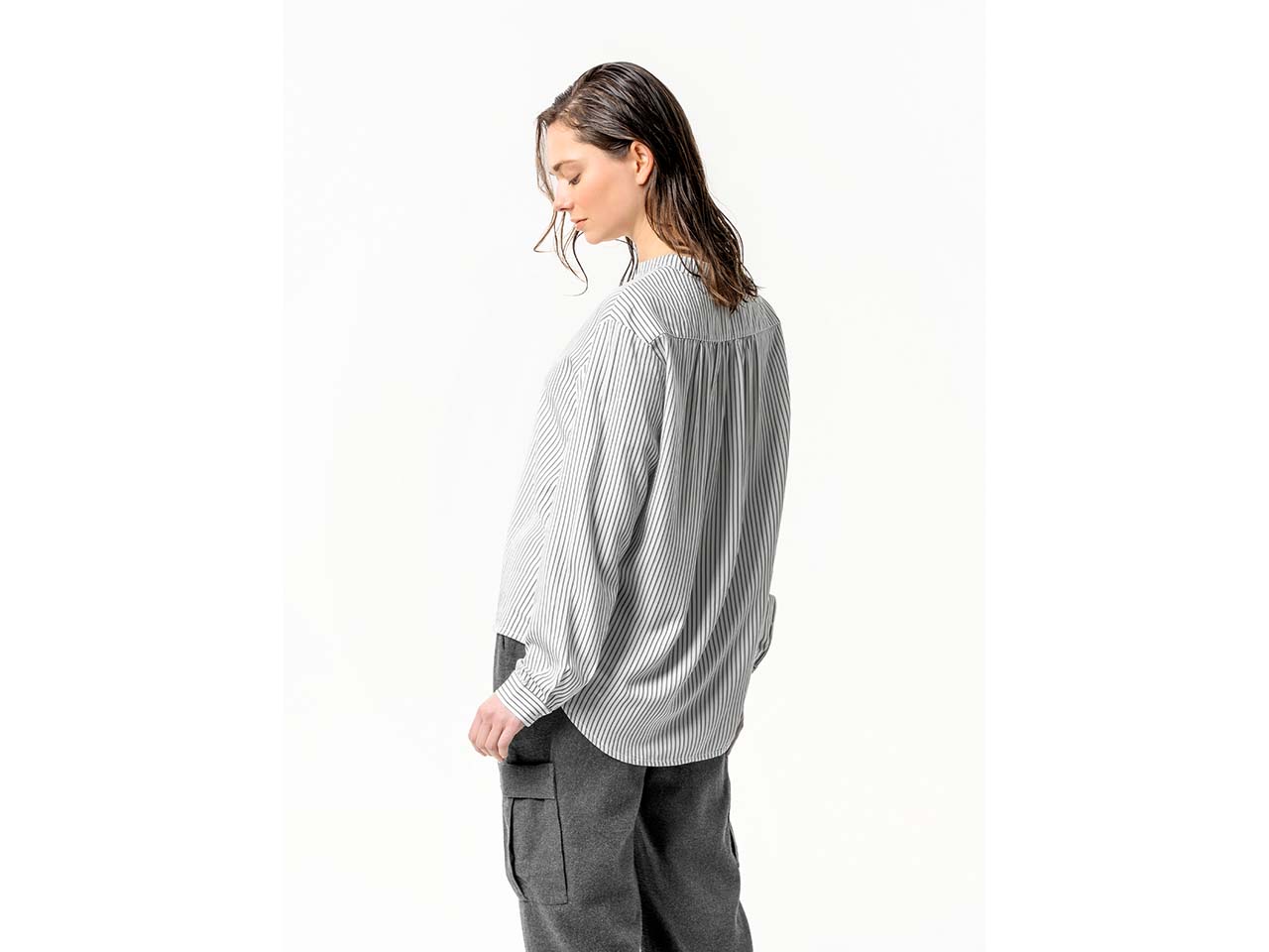 Cooler, lässiger Style ist mit dieser Hemdbluse ein Leichtes! Dank Tencel™ hat die Bluse eine weich fließende Qualität, die sich fast wie Seide auf der Haut anfühlt. Modisch überzeugt die Hemdbluse mit gestreiftem Print, lockerem Schnitt, Stehkragen und verlängerter Rückenpartie. Damit ist das Oberteil die perfekte Basis für vielseitige Outfits! Sie kann offen oder geschlossen getragen werden. Weiteres Highlight sind die Ärmel mit Manschette und verdeckter Knopfleiste.