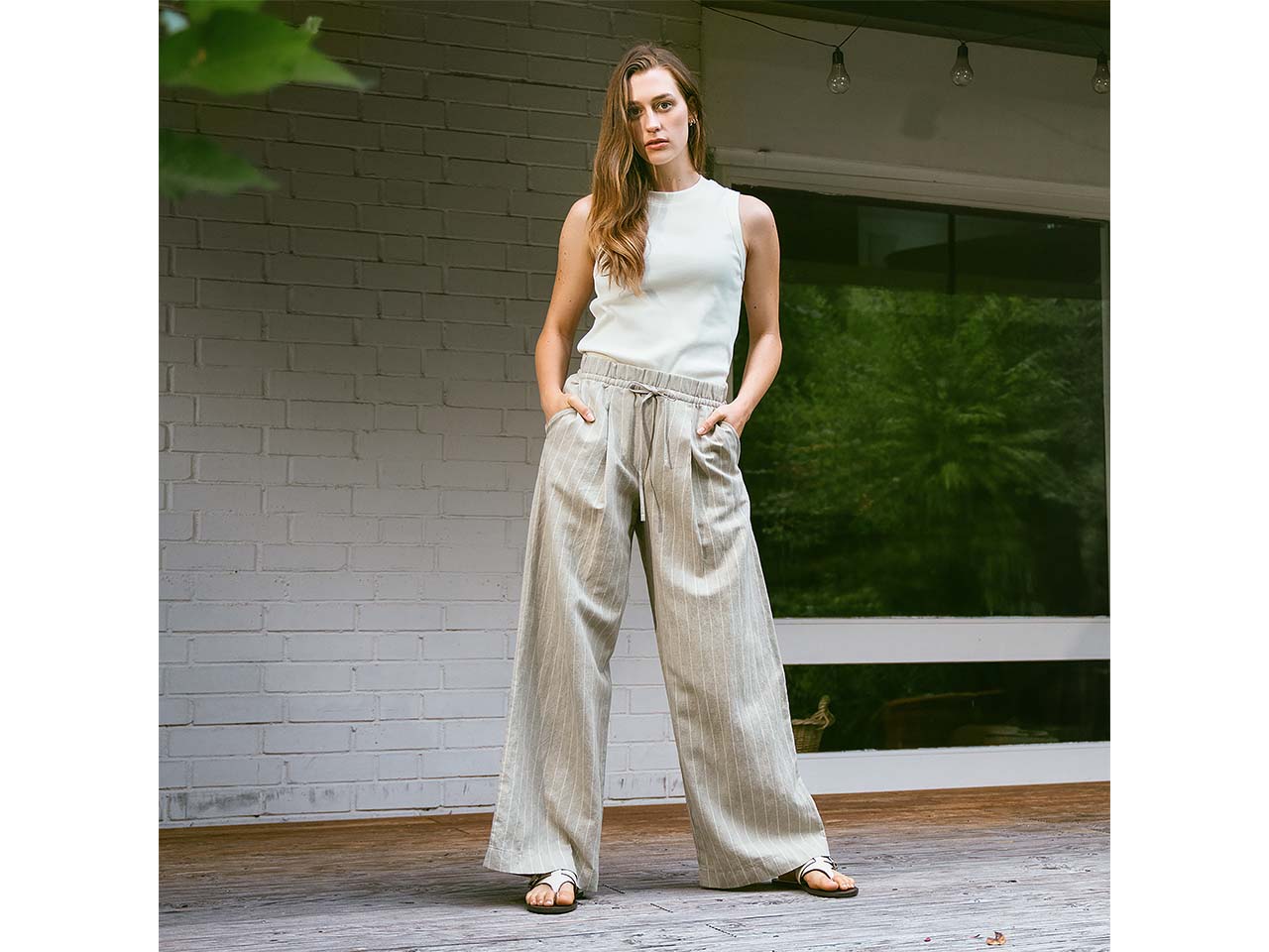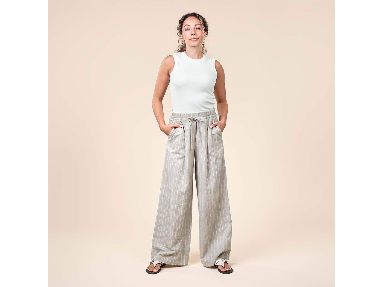 Eine Hose, die schick aussieht und die ganz viel Tragekomfort mitbringt! Sie besteht zu 100 % aus Leinen, wodurch sie besonders luftig ist. Zu diesem angenehmen Gefühl trägt auch das weite Bein bei. Modisches Highlight ist das Nadelstreifen-Design. Dadurch eignet sich die Leinenhose für vielseitige Outfits. Der elastische Bund mit Bindeband ermöglicht einen komfortablen Sitz am Körper. Praktische Eingrifftaschen hat die Damenhose ebenfalls.