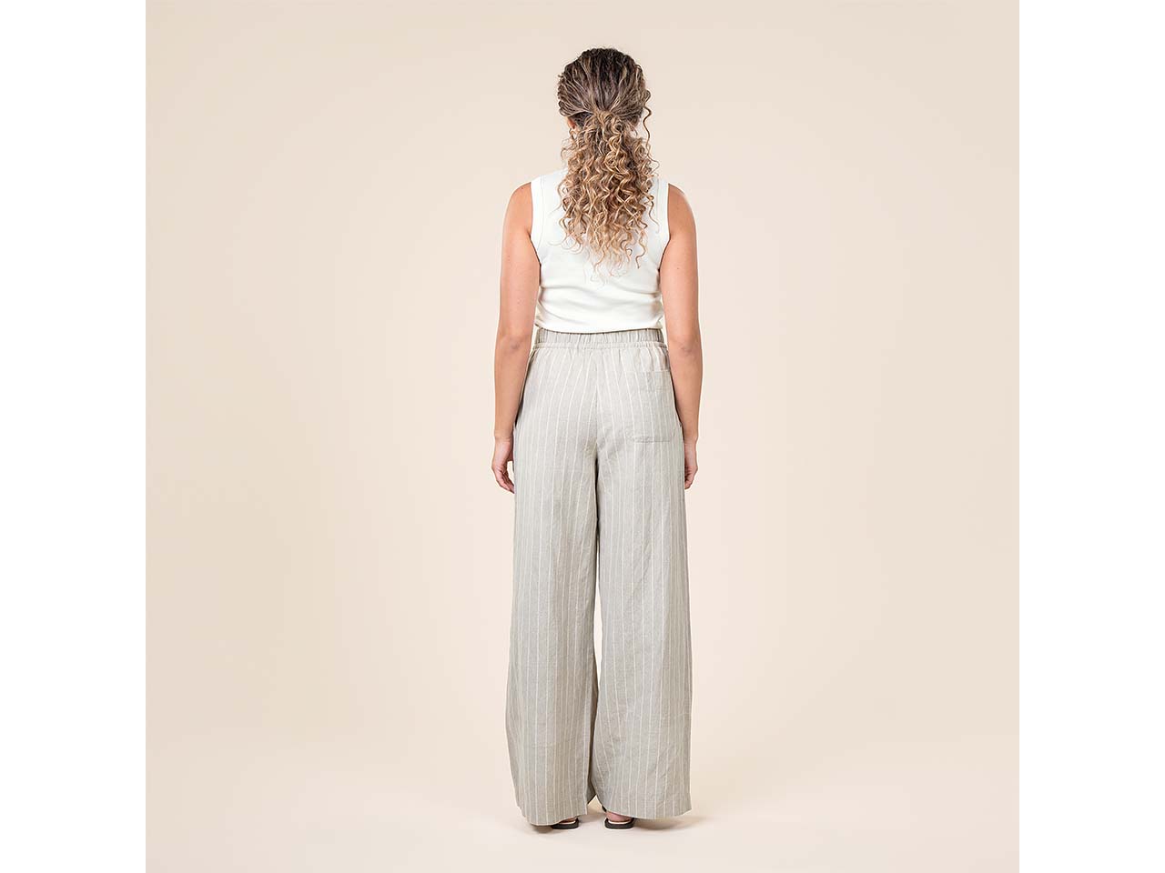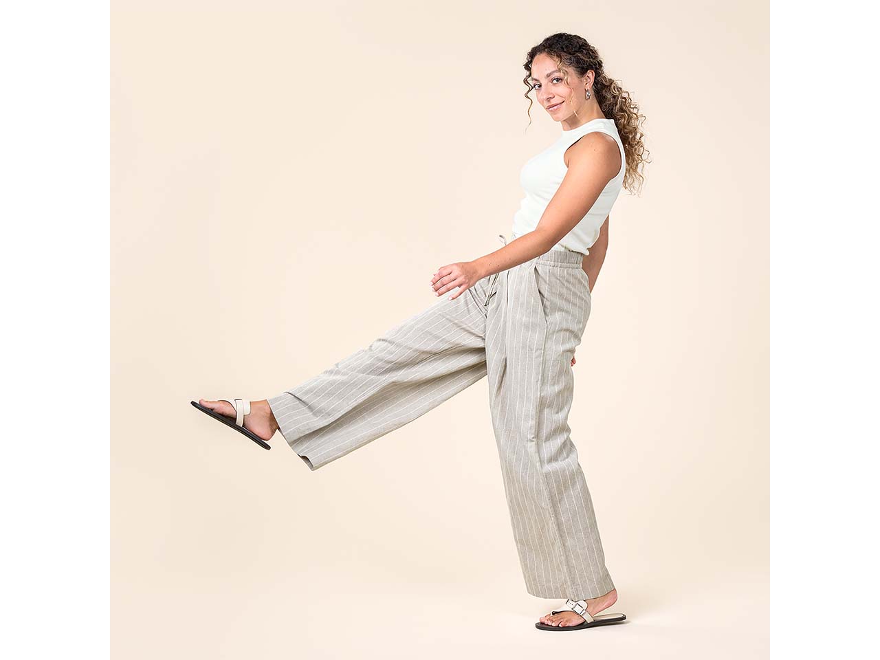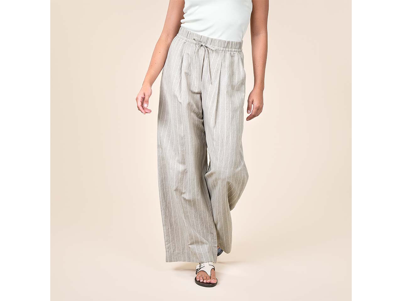 Eine Hose, die schick aussieht und die ganz viel Tragekomfort mitbringt! Sie besteht zu 100 % aus Leinen, wodurch sie besonders luftig ist. Zu diesem angenehmen Gefühl trägt auch das weite Bein bei. Modisches Highlight ist das Nadelstreifen-Design. Dadurch eignet sich die Leinenhose für vielseitige Outfits. Der elastische Bund mit Bindeband ermöglicht einen komfortablen Sitz am Körper. Praktische Eingrifftaschen hat die Damenhose ebenfalls.