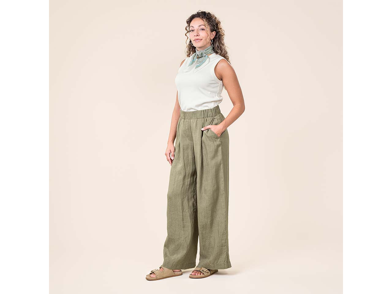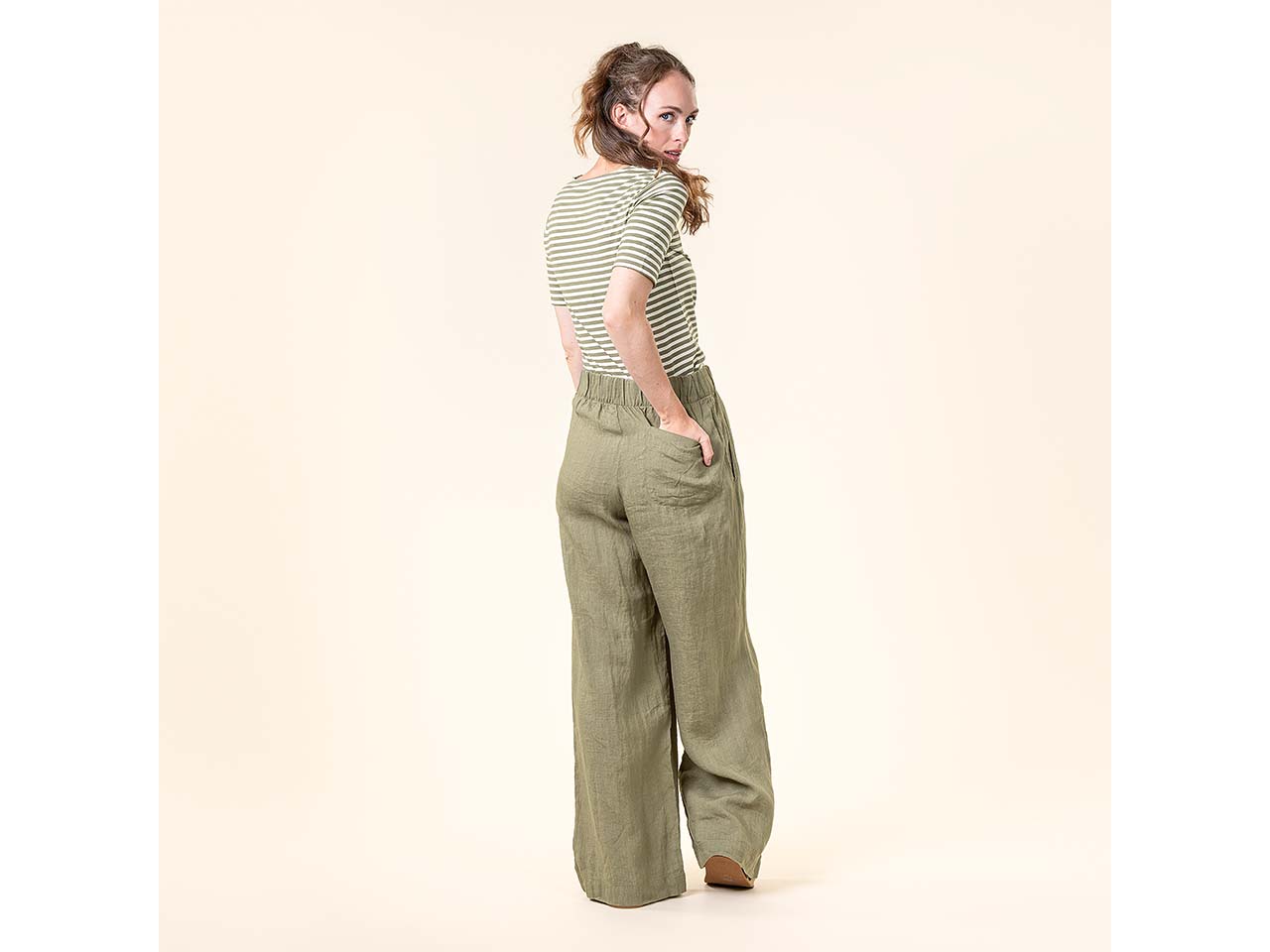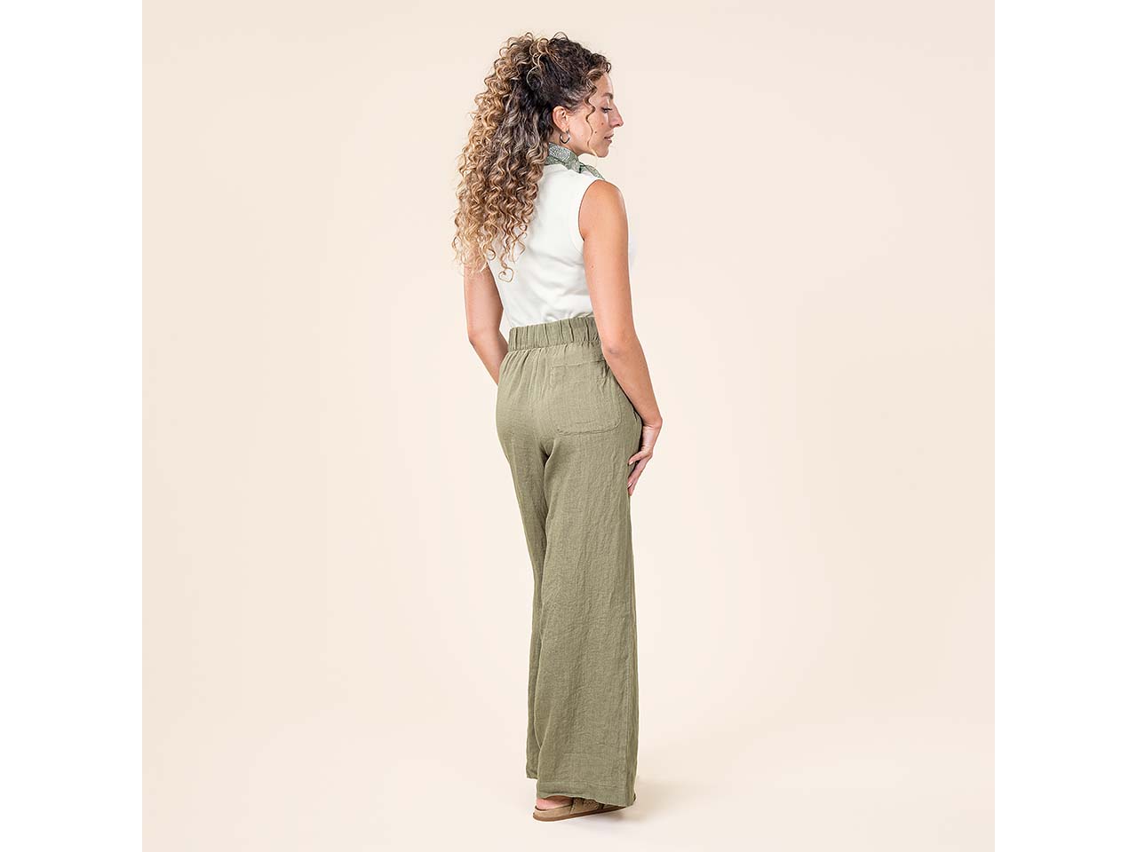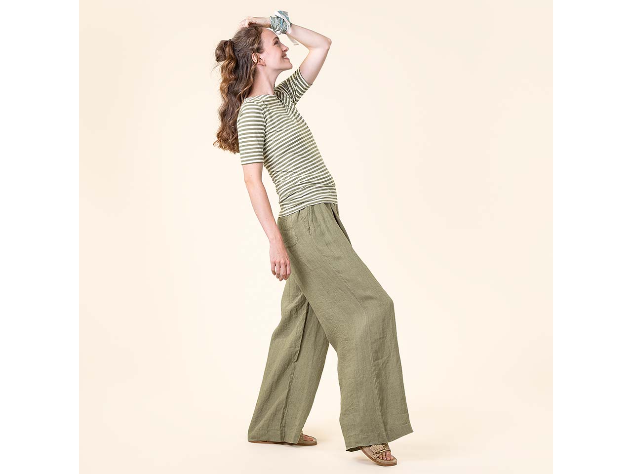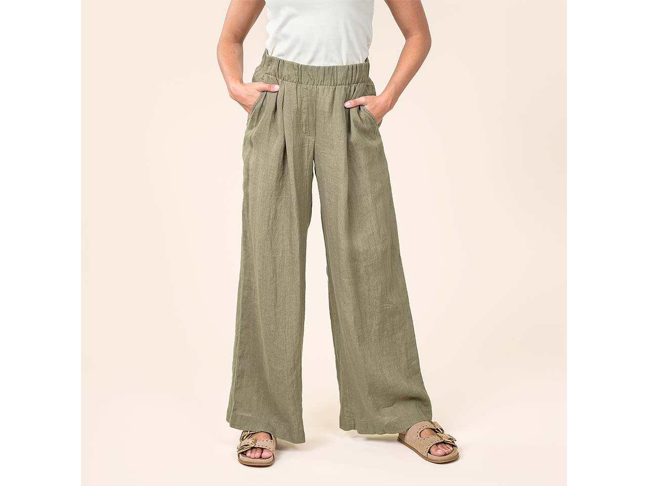 Lässig, modisch und dazu noch so bequem: Diese Damenhose hat das Zeug dazu, zum neuen Lieblingsteil zu werden! Sie besteht zu 100 % aus Leinen und ist daher besonders luftig – ideal für warme Sommertage. Durch das weite Bein entsteht viel Bewegungsfreiheit. Der elastische Bund rundet den hohen Tragekomfort perfekt ab. Die Leinenhose verfügt außerdem über eine aufgesetzte Hintertasche.