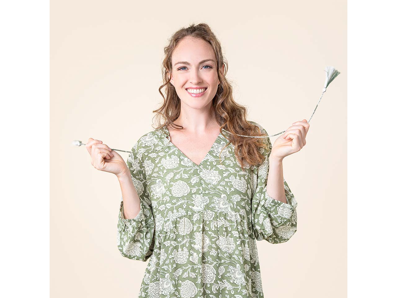 Das Textil ist aus der nachhaltigen Viskosefaser EcoVero™ gefertigt. Viskose hat eine besondere Faserfeinheit und erinnert in ihrer Beschaffenheit an eine Kombination aus Baumwolle und Seide. Hergestellt wird die Faser aus dem Naturstoff Cellulose, die aus Holzfasern gewonnen wird. Viskose hat viele positive Eigenschaften: sie hat eine hohe Saugfähigkeit, ist atmungsaktiv, kühlend, feuchtigkeitsregulierend und sorgt für ein angenehmes, seidiges Hautgefühl. Das Textil passt sich aufgrund des geringen Anteils Elasthan besonders gut an die Körperform an.