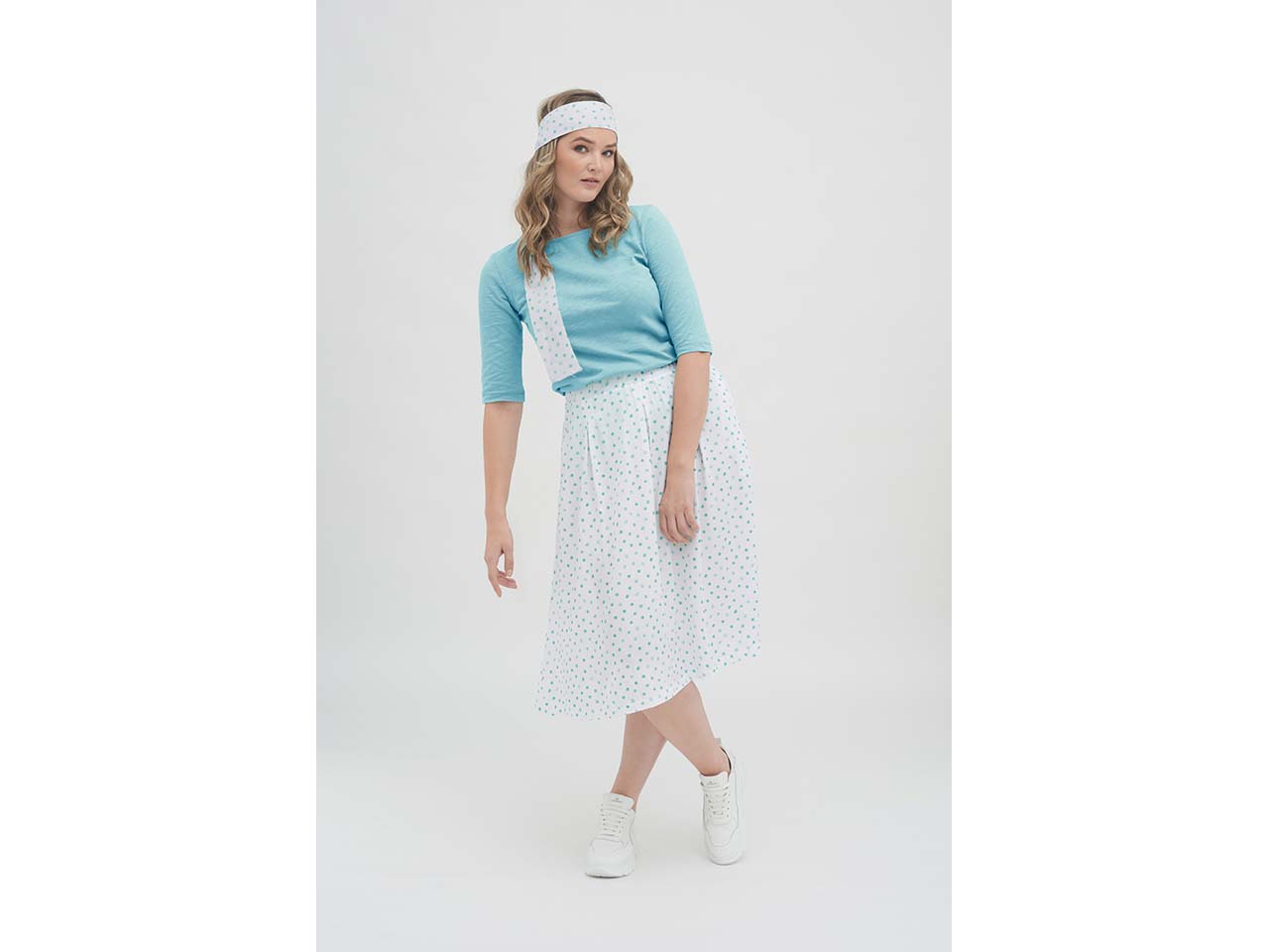 Seidig-sanft umschwingt dieser wunderschöne Rock die Beine. Seine luftige Qualität erhält er durch die Fertigung aus atmungsaktiver, nachhaltiger Viskose, die sich fantastisch auf der Haut anfühlt. Der Rock sitzt mit seinem elastischen Bund perfekt am Körper und bildet die Basis für viele sommerliche Outfits. Die zwei seitlichen Eingrifftaschen sind besonders praktisch und machen das Kleidungsstück alltagstauglich.