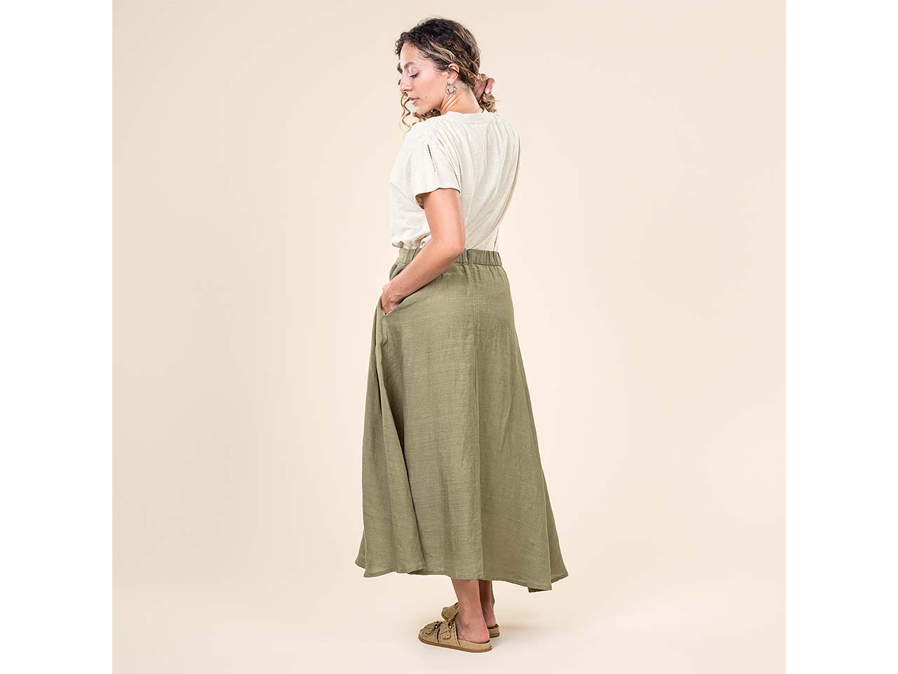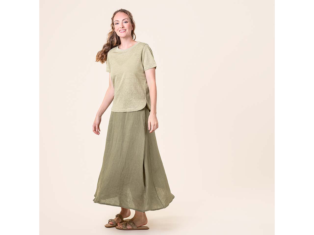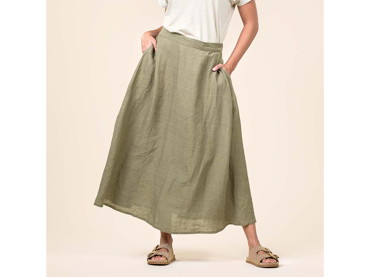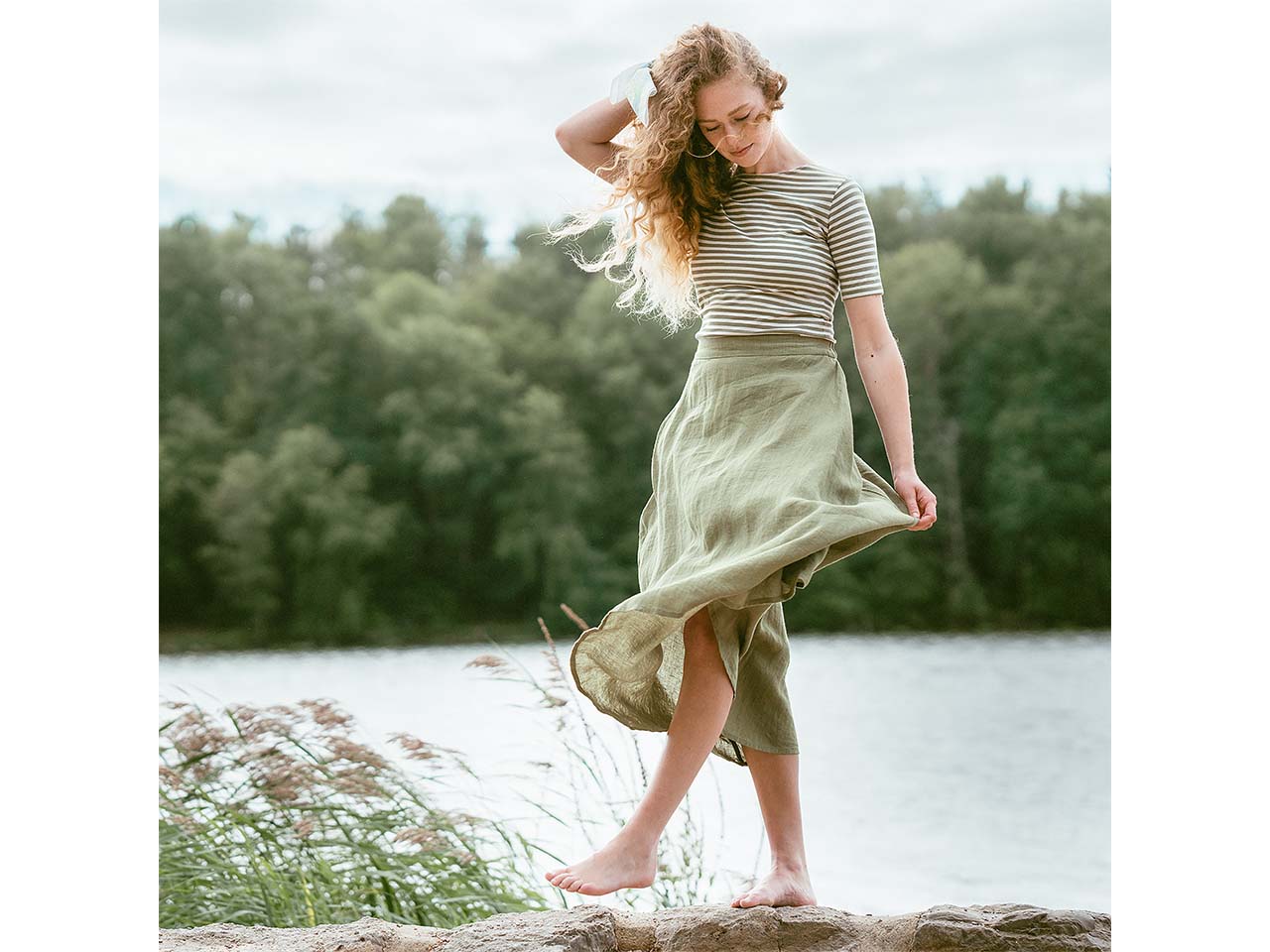 Dieser Midi-Rock schafft es, Komfort und Stil auf perfekte Weise miteinander zu kombinieren. Die Herstellung aus Leinen verleiht dem Rock einen hohen Tragekomfort – vor allem an warmen Sommertagen. Die A-Linie und die ausgestellte, elegante Form setzen modische Akzente. Der Hinterrock mit Teilgummi und nahtfreiem Reißverschluss sorgt für eine perfekte Passform. Als besonders praktisch erweisen sich die Seitennaht-Taschen.
