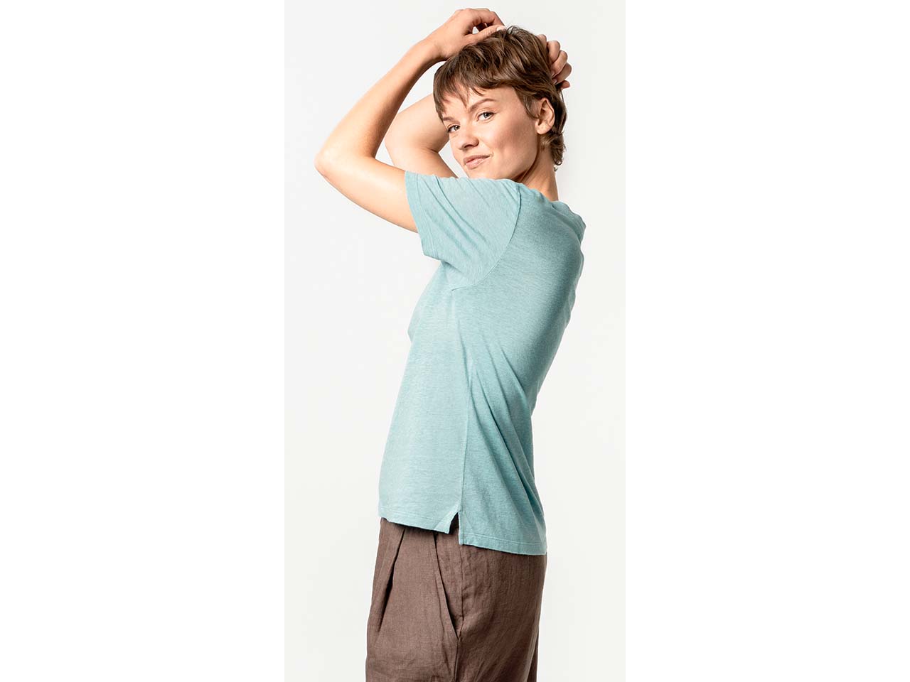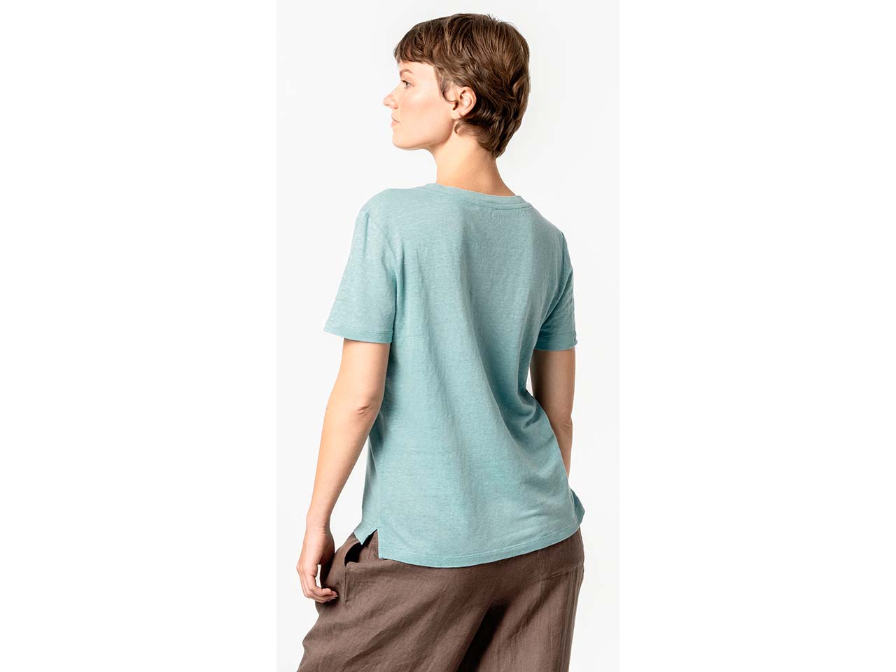 Im Sommer ist dieses T-Shirt ein echter Volltreffer! Es besteht zu 100 % aus Leinen und wirkt dadurch kühlend auf der Haut. Modisch macht das Oberteil keinerlei Abstriche: Der elegante V-Ausschnitt, Flachstrick und kurze Seitenschlitze verleihen dem Shirt eine tolle Optik. Das Halbarmdesign sorgt für optimale Bewegungsfreiheit. Das Leinen-T-Shirt ist ein vielseitiges Kleidungsstück für die warme Jahreszeit.
