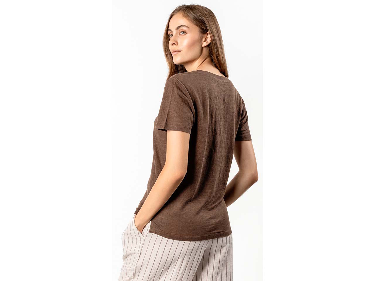 Living Crafts Damen-T-Shirt "TALIDA" aus Leinen mit V-Ausschnitt