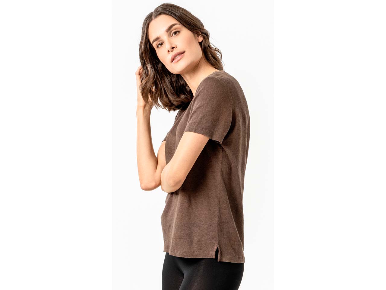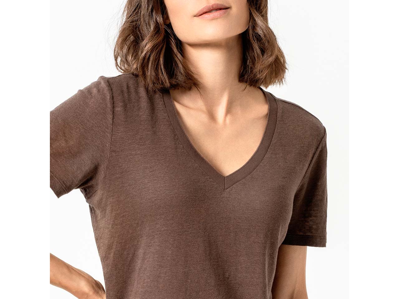 - Leinen-Shirt mit V-Ausschnitt und elegantem Flachstrick