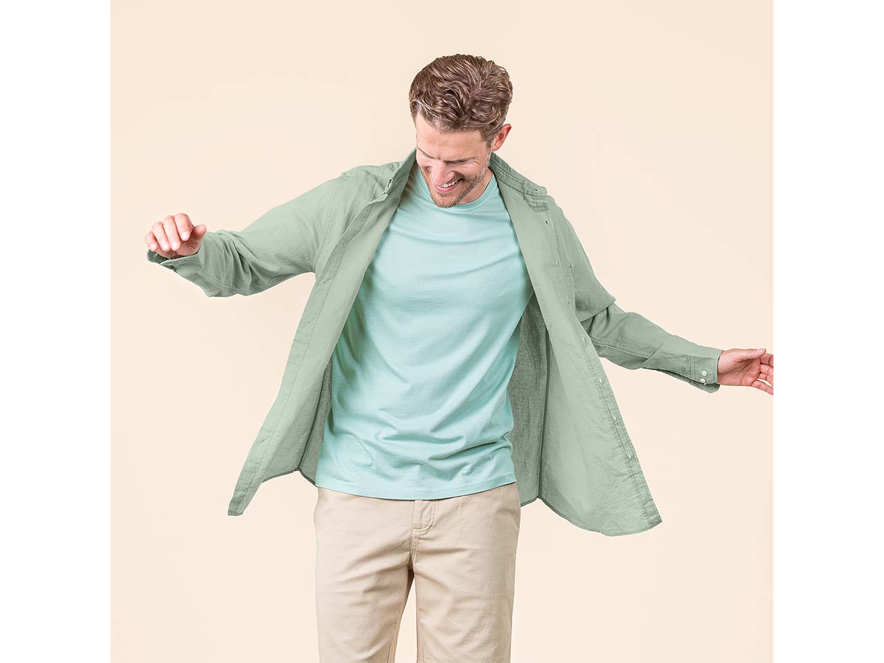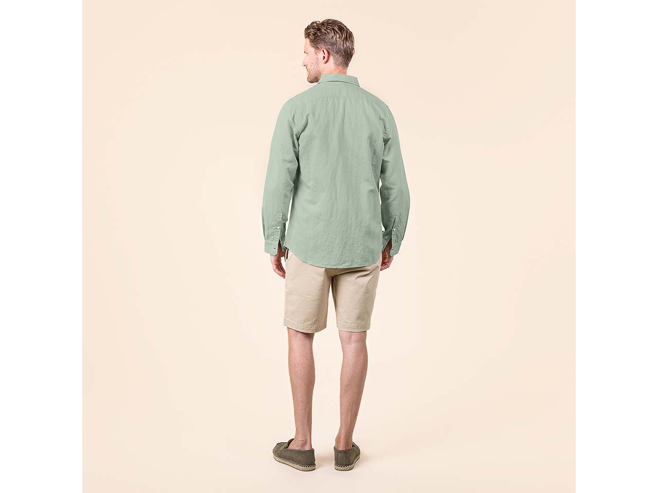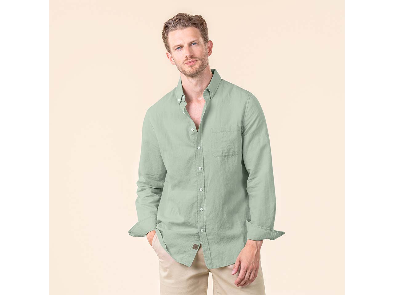 Wer auch im Sommer nicht auf den klassischen Hemd-Look verzichten möchte, wird dieses Hemd einfach lieben. Durch den Materialmix aus Leinen und Bio-Baumwolle ist der Stoff federleicht und noch dazu leicht kühlend. So entsteht ein besonders hoher Tragekomfort. Das langärmelige Hemd hat links eine aufgesetzte Brusttasche und Zwei-Knopf-Manschetten. Das Hemd sieht auf- und zugeknöpft klasse aus. Dadurch entstehen zahlreiche Outfitmöglichkeiten. Das Hemd ist ein echtes Must-have für modebewusste Herren!