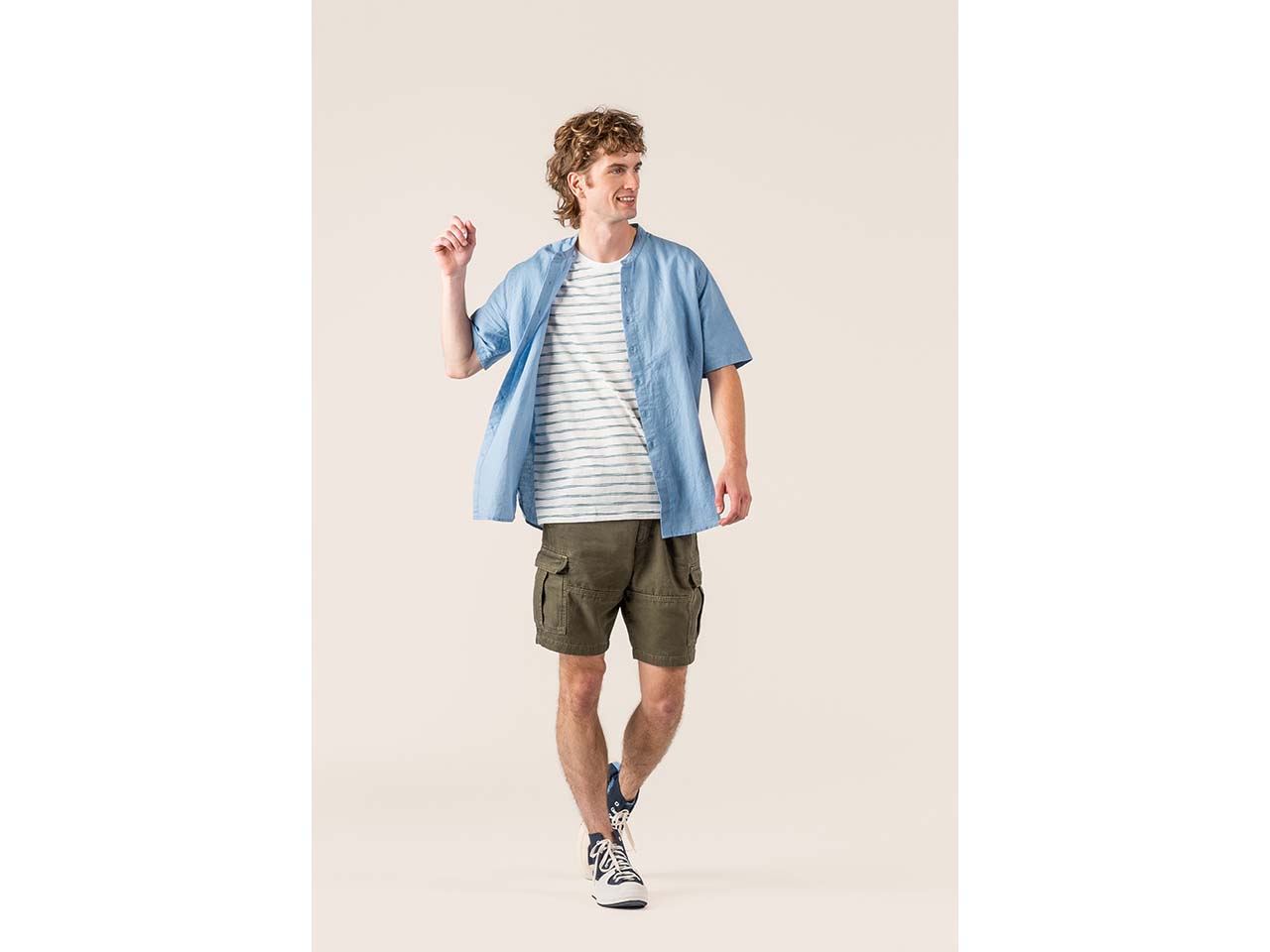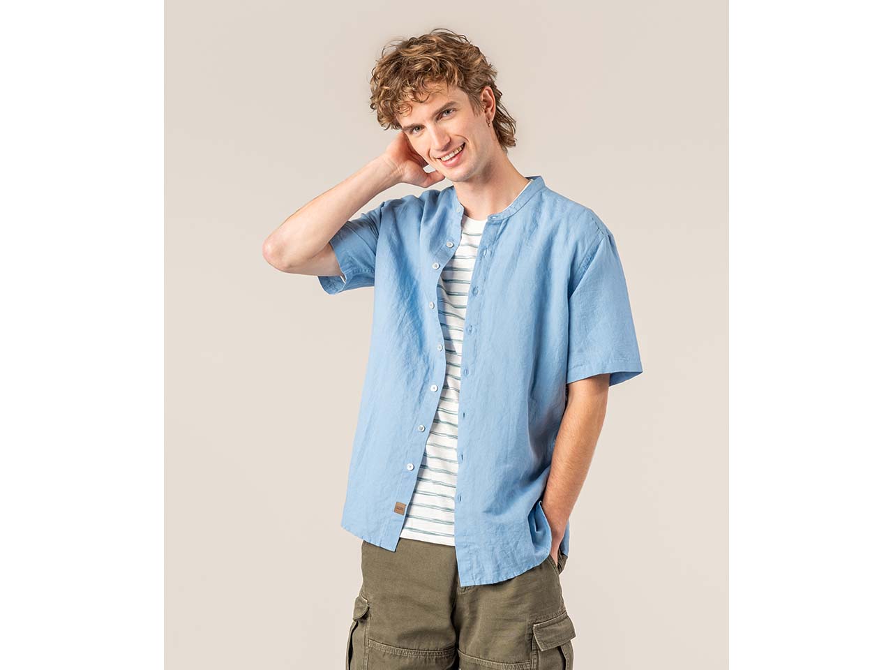 Für einen sommerlich lässigen Look sorgt dieses klassische Hemd. Der hochwertige Materialmix aus Leinen und Bio-Baumwolle verleiht dem Hemd eine luftige Qualität. Selbst an heißen Tagen ist der Tragekomfort dadurch exzellent. Dazu sieht das kurzärmelige Hemd auch einfach schick aus. Zu dem modischen Aussehen tragen die Knopfleiste und vor allem der stylische Mandarin-Kragen bei. Ein Hemd, das in die Freizeit genauso gut passt wie in das Büro.
