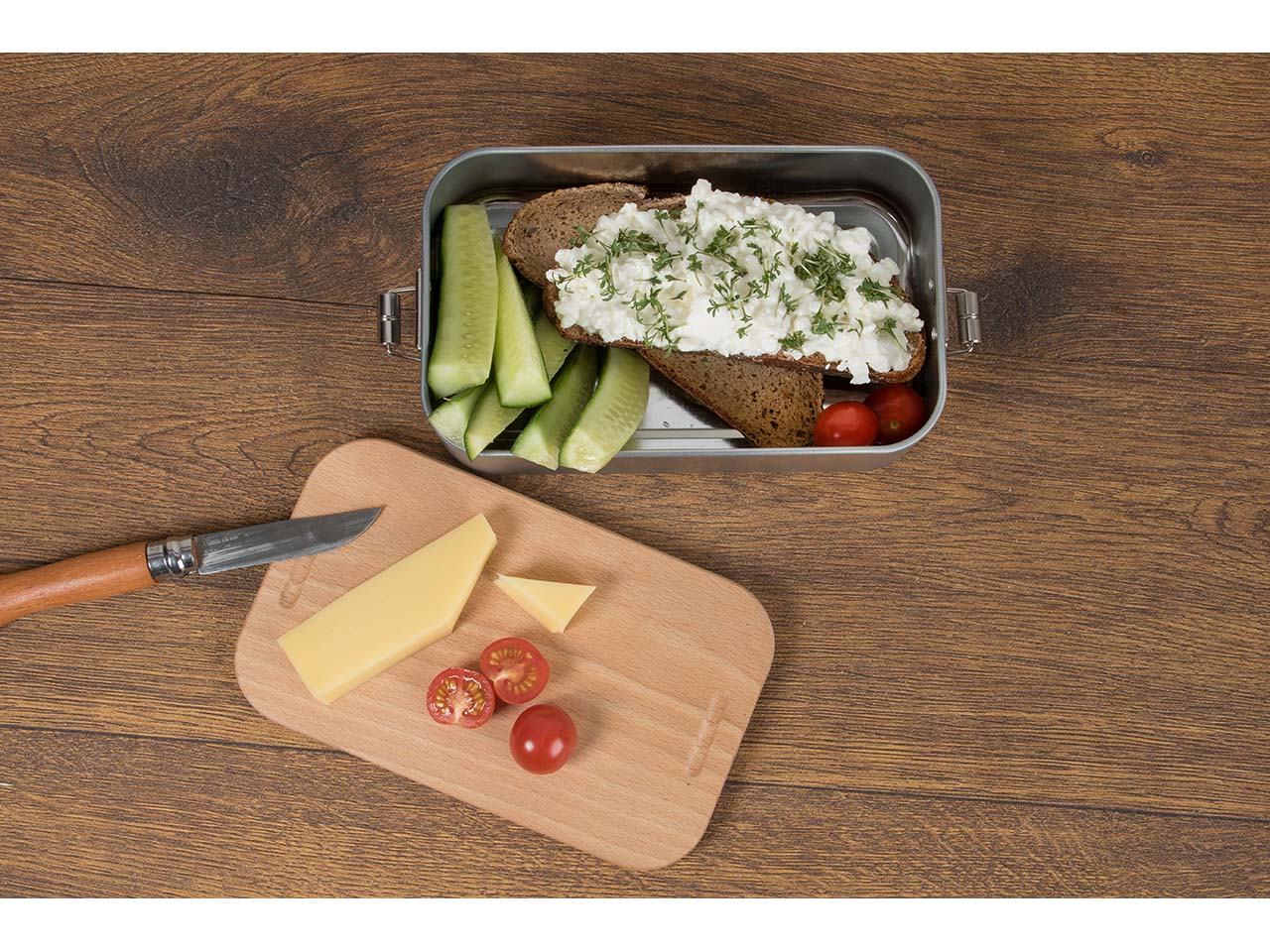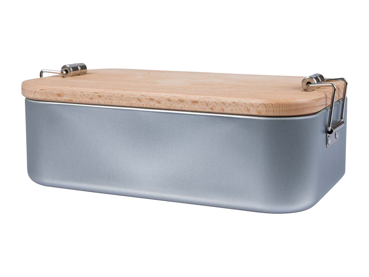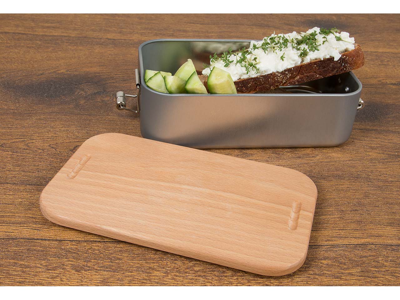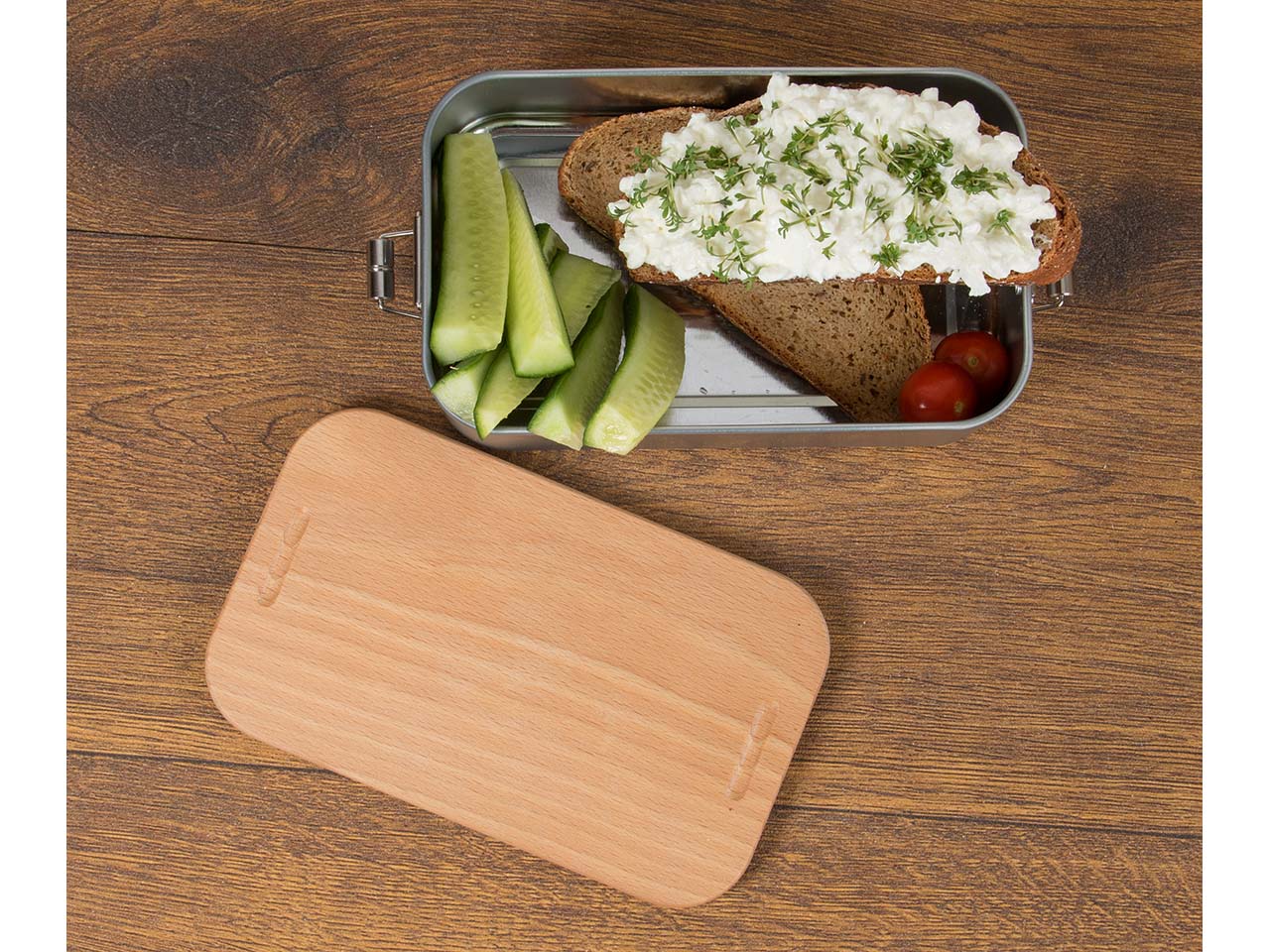Lunchbox "2in1" aus Weißblech mit Buchenholzdeckel