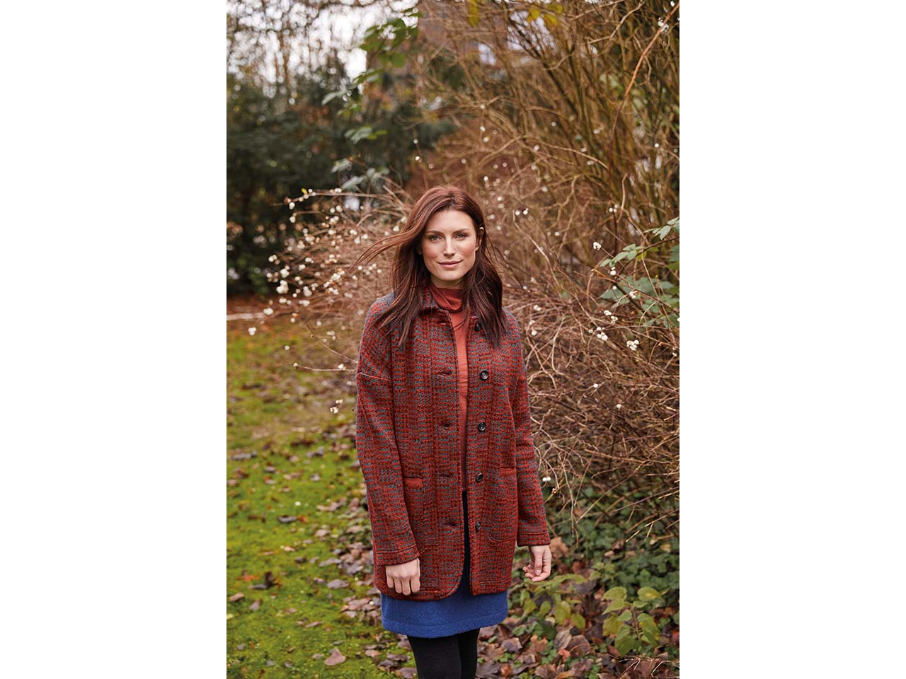 Die aktuelle Herbst/Winter Kollektion von MADNESS ist inspiriert vom skandinavischen „Hygge“, das für das positive und warme Lebensgefühl und Glücklichsein steht. Passend dazu kommt der Mantel aus Wollgemisch von MADNESS daher, der in seinen herbstlichen Farbton nicht nur Wärme ausstrahlt, sondern durch seinen Materialmix aus 60 % Bio-Wolle und 40 % Bio-Baumwolle auch wunderbar warm hält. Die dekorativen Aufnähte auf den Taschen machen ihn nochmal zu etwas ganz Besonderem. Vorne wird der Mantel mit Knöpfen geschlossen und oben hält er durch seinen Kragen kuschelig.