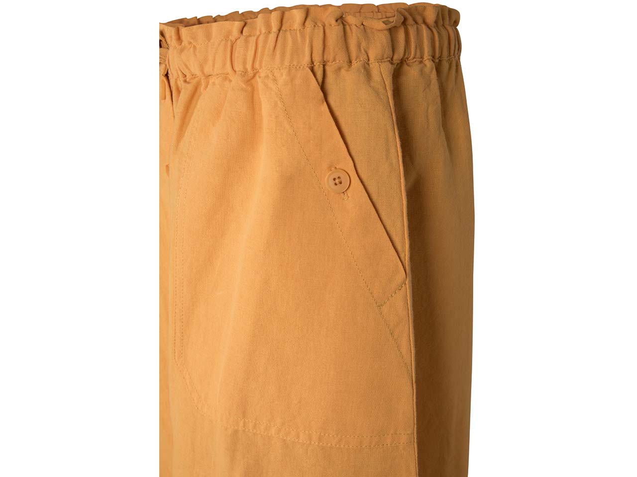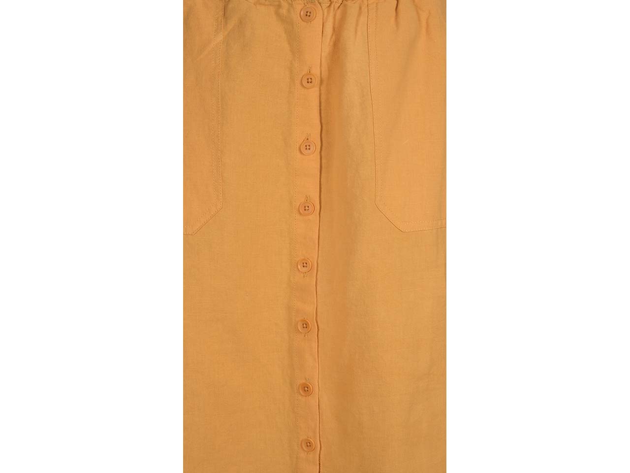Nicht nur die Farbe ist bei diesem Kleidungsstück sommerlich: Die Kombination aus Leinen und Bio-Baumwolle macht diesen Madness Rock zum perfekten Begleiter bei warmen Temperaturen! Hoher Tragekomfort entsteht auch durch den mit Bindeband individualisierbaren, bequemen Bund. Besonderes Highlight: Der Rock hat zwei Seitentaschen! Optisch glänzt der Rock auch mit der durchgehenden Knopfleiste, die viele Tragemöglichkeiten eröffnet. Der Rock ist perfekt für Ausflüge in die Natur, für Shoppingtouren oder beim Treffen mit Freunden. Kombinieren kann Frau das Kleidungsstück mit einer lockerer Bluse oder einem Top. Dann noch schnell Sandalen an und schon steht das Sommeroutfit!