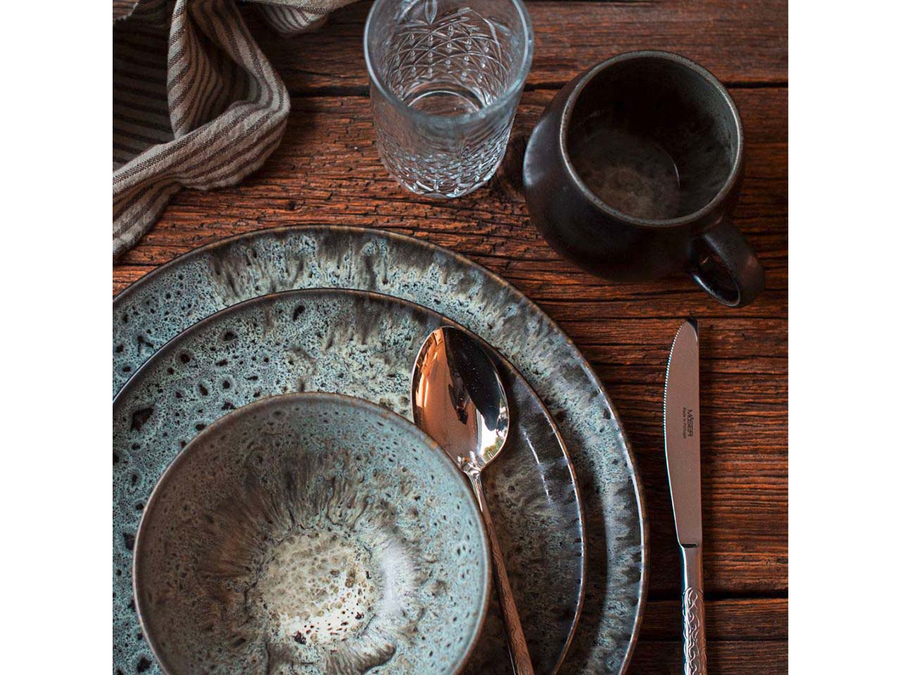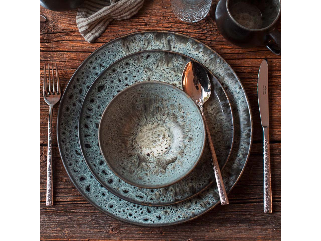 - Hochwertiges Steinzeug mit visueller Reaktivglasur