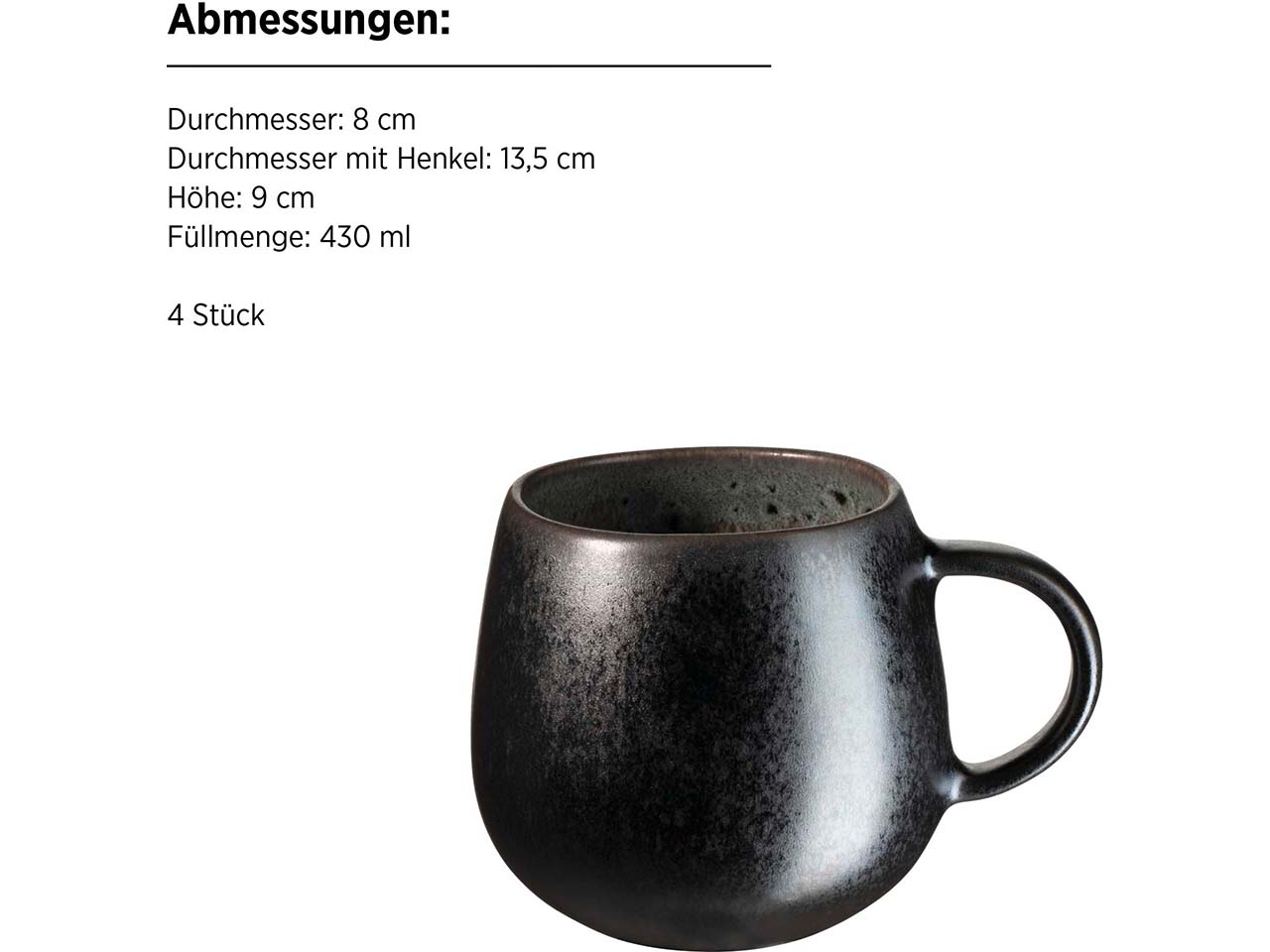 | Inhalt: | 4 x Dessertteller 23 cm, 4 x Schüssel 15 cm, 4 x Kaffeebecher 430 ml |