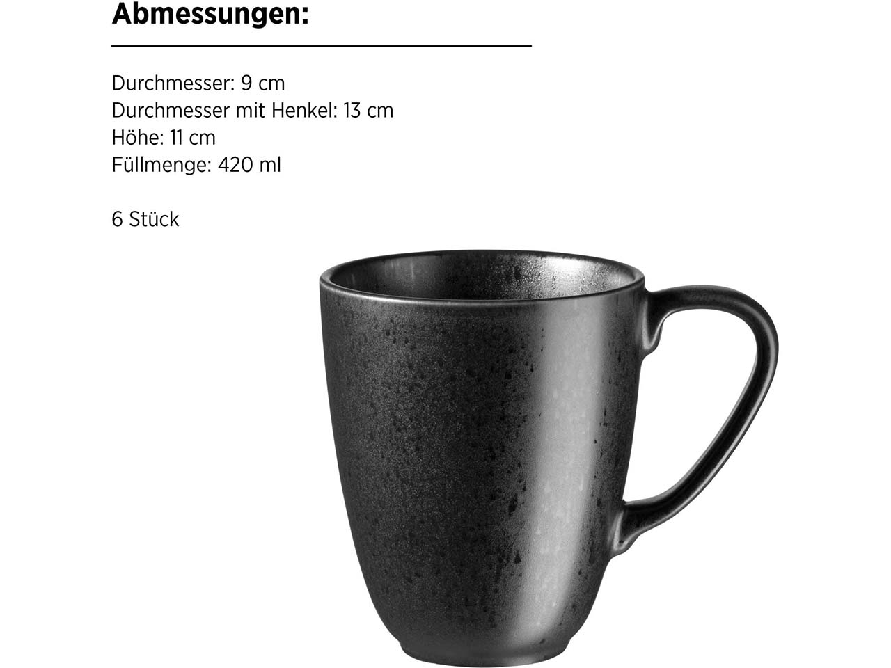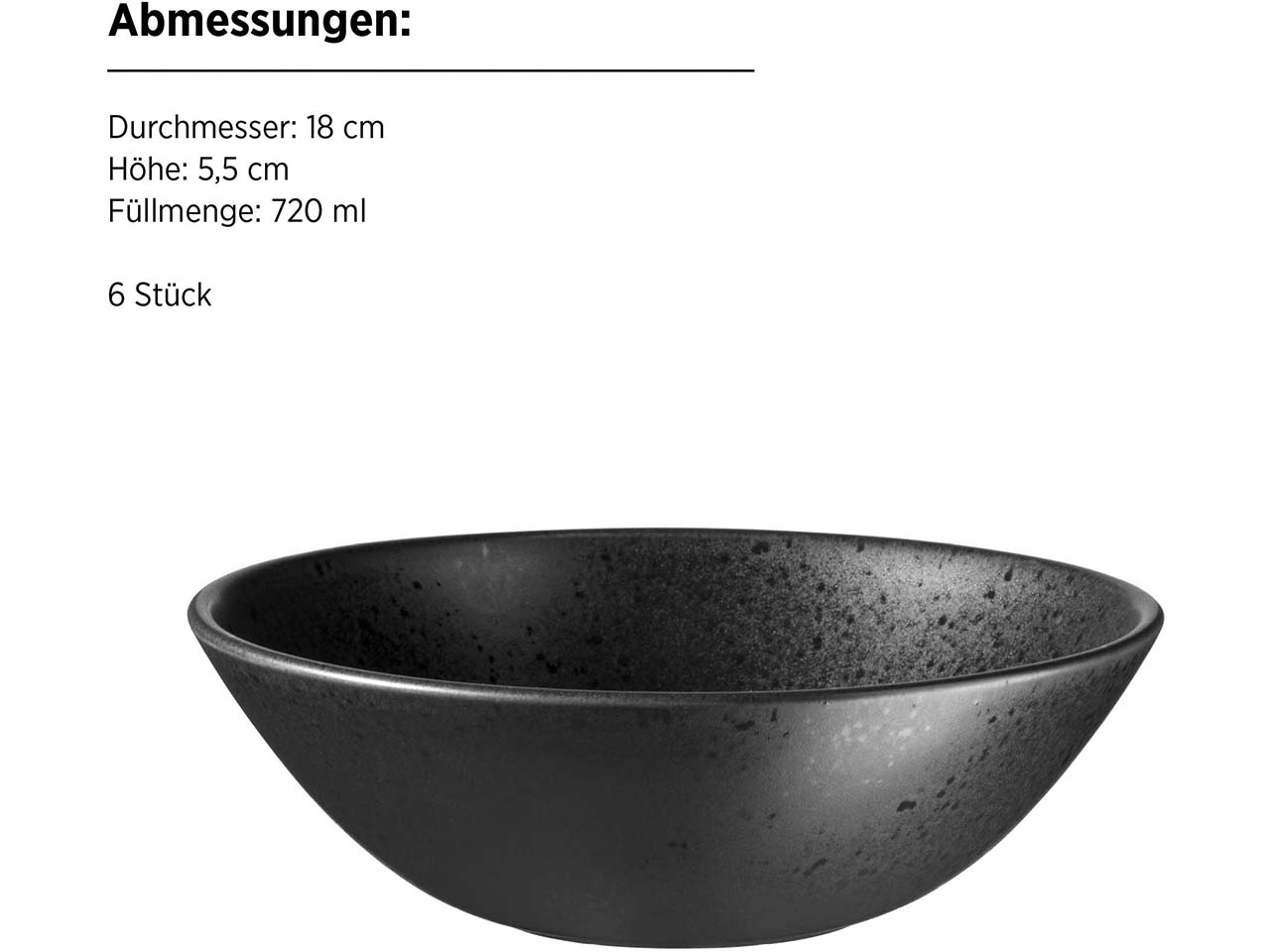 | Inhalt: | 6 x Dessertteller 22 cm, 6 x Schüssel 18 cm, 6 x Kaffeebecher 410 ml |