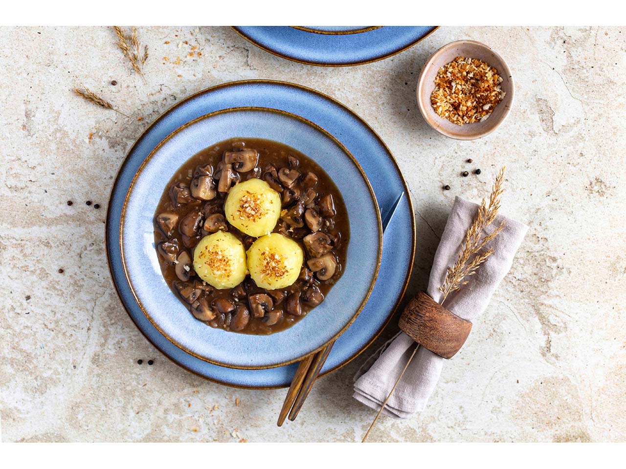 - 12-teiliges Frühstücks-Geschirrset in warmen Naturtönen