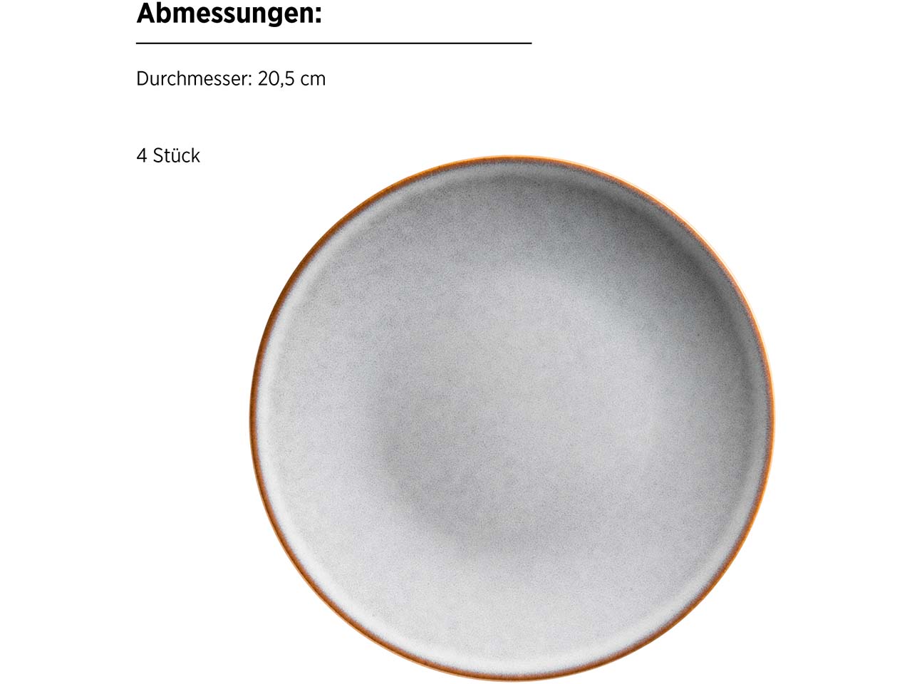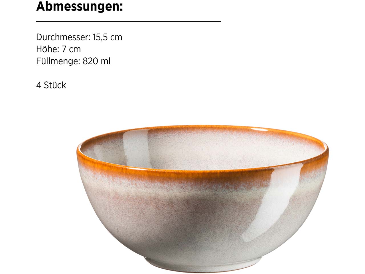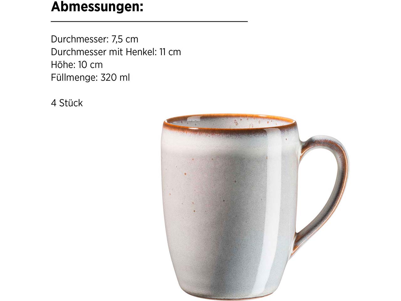 | Inhalt: | 4 x Desserteller 21 cm, 4 x Schüssel 16 cm, 4 x Kaffeebecher 325 ml |