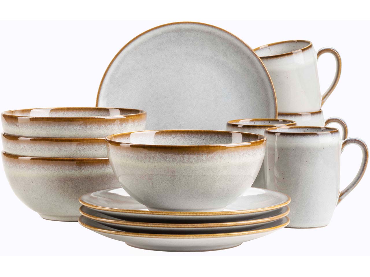 12-teiliges Frühstücks-Geschirrset in warmen Naturtönen