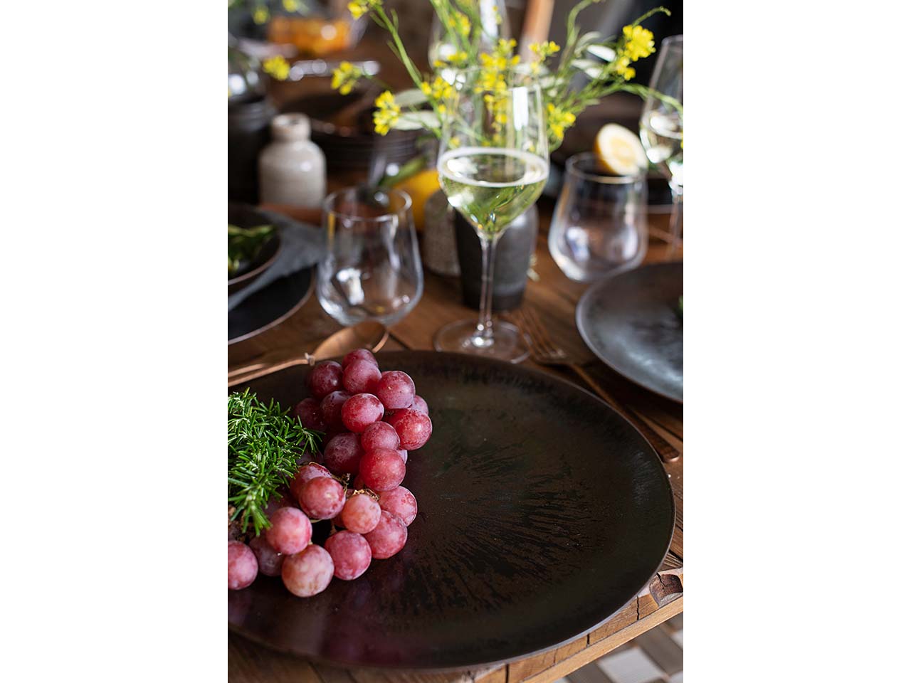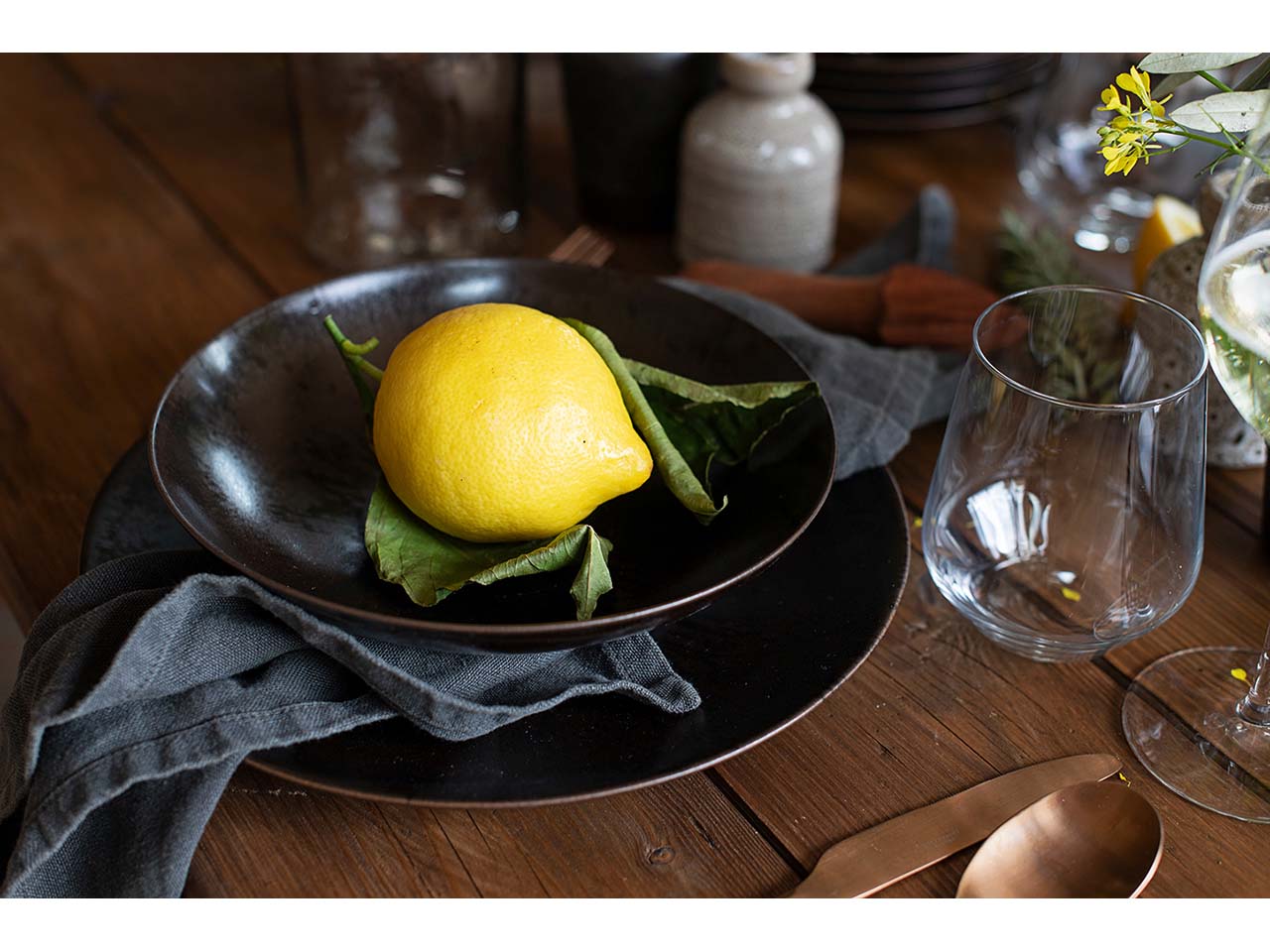 Ein edler Schimmer zeichnet dieses hochwertige Tafelservice aus. Das 12-teilige Set mit jeweils vier flachen Tellern, Suppen- und Kuchentellern wird in Portugal aus regional gewonnenem Steinzeug gefertigt. Das Material ist genauso pflegeleicht wie Porzellan und ist spülmaschinen- sowie mikrowellengeeignet. Die reaktive Glasur macht jedes Teil zu einem Unikat. Farbabweichungen und Unebenheiten in der Glasur sind Qualitätsmerkmale.