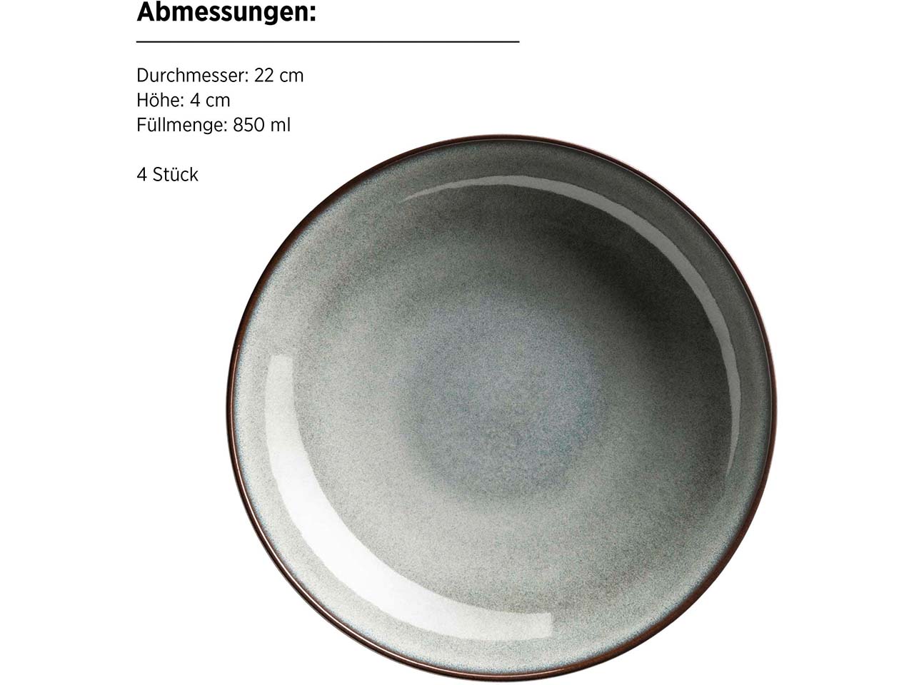 | Inhalt: | 4 x Teller flach 27 cm, 4 x Teller tief 22 cm |
