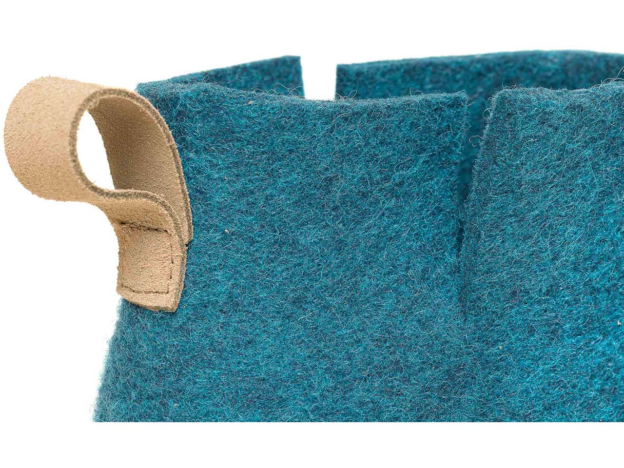 Für alle Produkte wird nur natürliche Schurwolle – hier vom Merinoschaf – verwendet und ohne Chemie verfilzt, wodurch die Umweltbelastung reduziert wird. Die Wolle für die Naturfilze ist immer mulesing-frei. Bei der sogenannten Mulesierung wird die Haut rund um den Schwanz des Schafes ohne Betäubung entfernt, um Parasitenbefall durch Fliegenmaden vorzubeugen. Dieses grausame Verfahren kommt hier nicht zum Einsatz! Die Schafe werden mit alternativen, tiergerechten Verfahren, wie beispielsweise durch mehrfaches Stutzen der Wolle an den gefährdeten Stellen, behandelt. Die Fertigung erfolgt in einer Manufaktur in Tirol, Österreich.