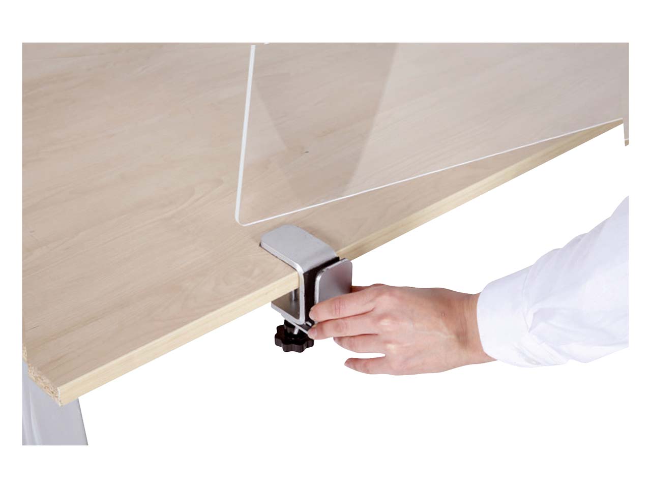 An Theken, Schreib- oder Seminartischen eine effektive physische Barriere schaffen, um Kund:innen und Mitarbeitenden wirksam vor Viren zu schützen: Diese Schutzwand aus Acryl wird denkbar einfach befestigt und agiert als Nies-, Spuck- und Hustschutz. Sie eignet sich optimal für Arbeitsplätze, Konferenzräume, Lebensmittel- und Drogeriemärkte, Speise- und Lieferservices, Tankstellen, etc. Die mitgelieferten Halteklammern ermöglichen es, die Hygienewand flexibel an Tischplatten (6 bis 40 mm) zu befestigen. So kann sie z.B. an Theken, Tresen, Rezeptionen und Kassen genauso verwendet werden wie an Schreibtischen. Dabei verhindern die weichen Polster an den Klammern, dass der Tisch beschädigt wird. Der Spuckschutz ist leicht zu reinigen und zu desinfizieren. Erhältlich in verschiedenen Größen.