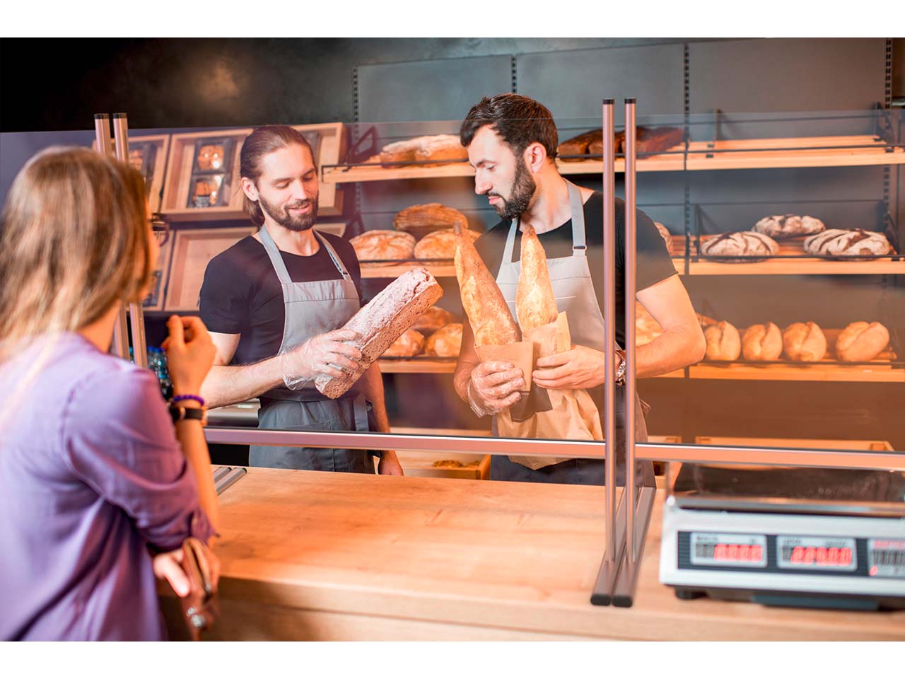 Die magnetoplan Hygienewand bietet mehr Sicherheit und Hygiene für Mitarbeiter und Kunden, denn Krankheitserreger prallen an dem Aufsteller aus Arcylglas ab. Das sorgt für einen effektiven Schutz vor Vireninfektionen an Verkaufsschaltern, Theken, Empfangstresen, Rezeptionen oder Kassen. Der Spuckschutz mit stabilem Aluminiumrahmen und –Füßen ist leicht zu reinigen und zu desinfizieren. Fußtiefe: 620 mm.