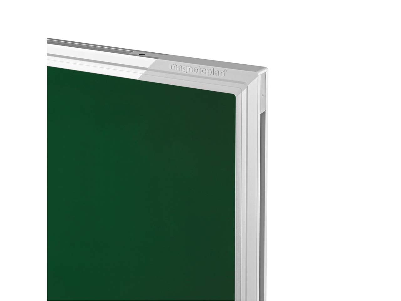 Ideale Tafel für Schul- oder Schulungszwecke: Die Magnetoplan Kreidetafel mit grün lackierter Oberfläche ist magnethaftend und eignet sich zum beschriften mit Kreide oder zum Anbringen von Notizen, Bildern, etc. mit Magneten. Die Tafel lässt sich trocken oder nass abwischen. Mit einer durchgehenden Ablageschale für z.B. Kreide und Schwamm. B 90 x H 60 cm.