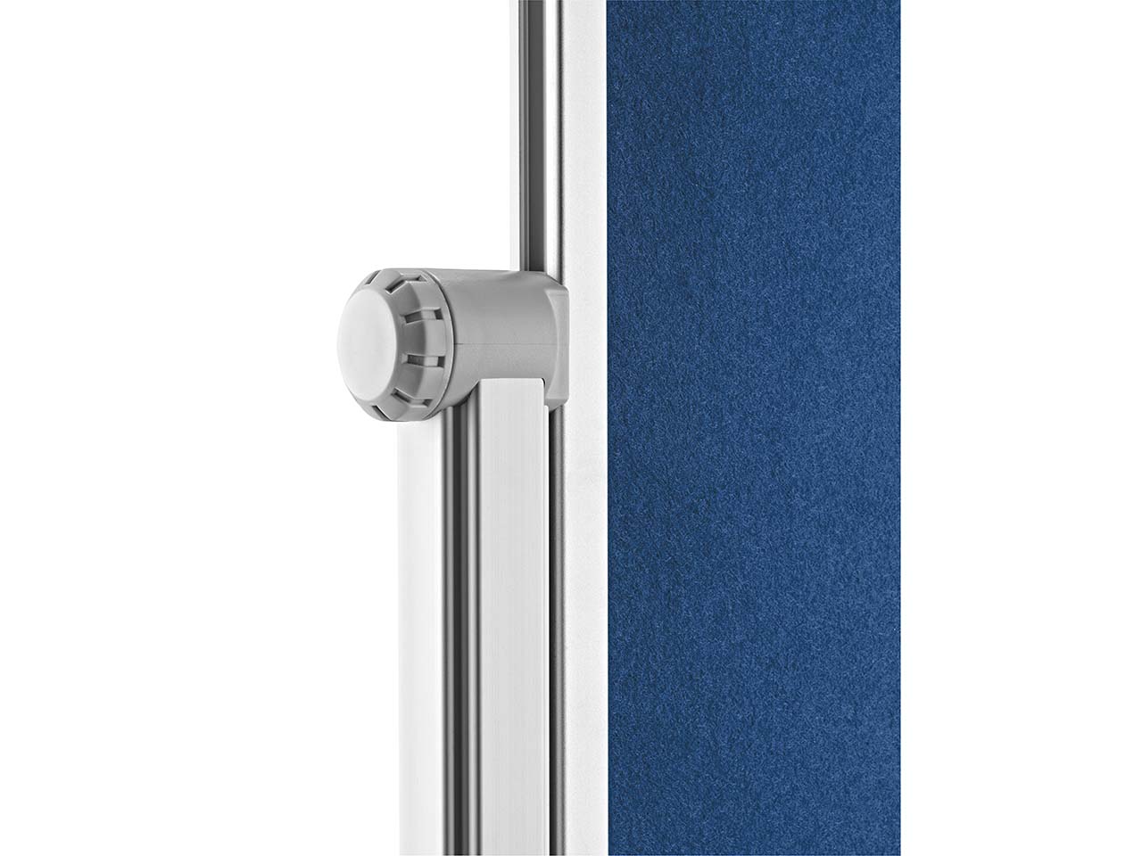 Die beidseitig nutzbare Pinnwand ist 20 mm stark und verfügt über einen stabilen System-Rahmen aus Aluminium. An diesem lassen sich z. B. eine Flipchart-Papierhalterung, ein Seitenarm oder eine Ablageschale schnell montieren. Die abgewinkelten Aluminiumfüße ermöglichen die Anordnung mehrerer Wände im idealen Moderationskreis.