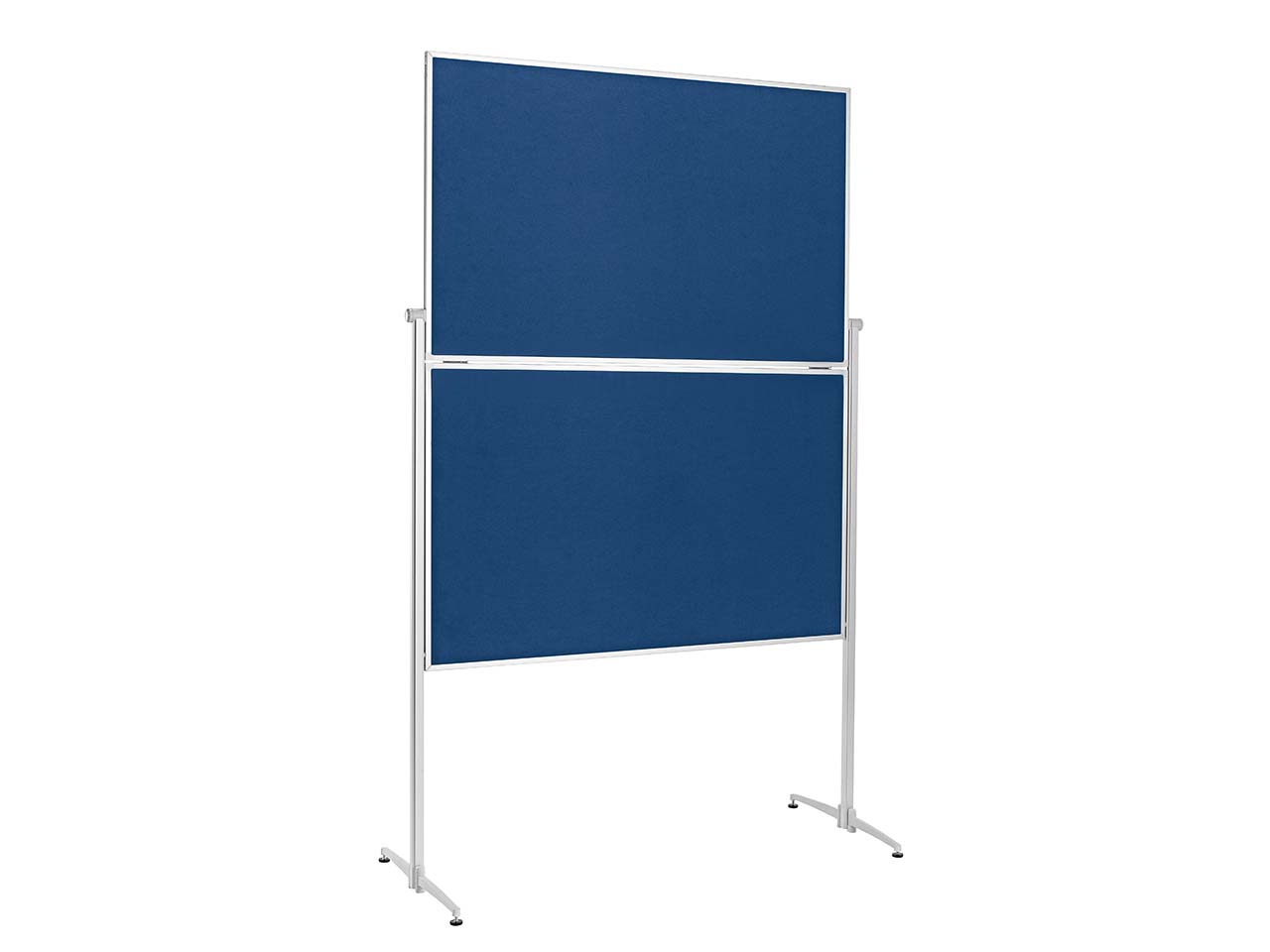 Die klappbare Moderationswand von Magnetoplan ist höhenverstellbar, beidseitig nutzbar und dank des stabilen System-Rahmens aus Aluminium erweiterbar. So kann z.B. ein Seitenarm für Flipchart-Papier angebracht werden. Ausführung: Filz blau. Lieferung inkl. Standfüße und feststellbare Rollen. B 120 x H 150 cm (ohne Fuß).