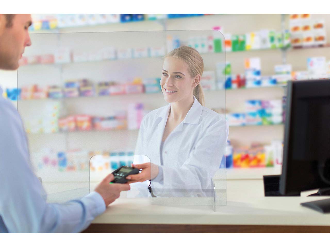 Der magnetoplan Nies- und Spuckschutz aus transparentem Acrylglas schützt vor Vireninfektionen an Verkaufsschaltern, Theken, Empfangstresen, Rezeptionen und Kassen. Krankheitserreger prallen an dem extra schmalen Tischaufsteller einfach ab. Die Wand mit oben abgerundeten Ecken ist leicht zu reinigen und zu desinfizieren. Mit einer Fußtiefe von 246 mm. Durchreiche von 25 x 20 cm.