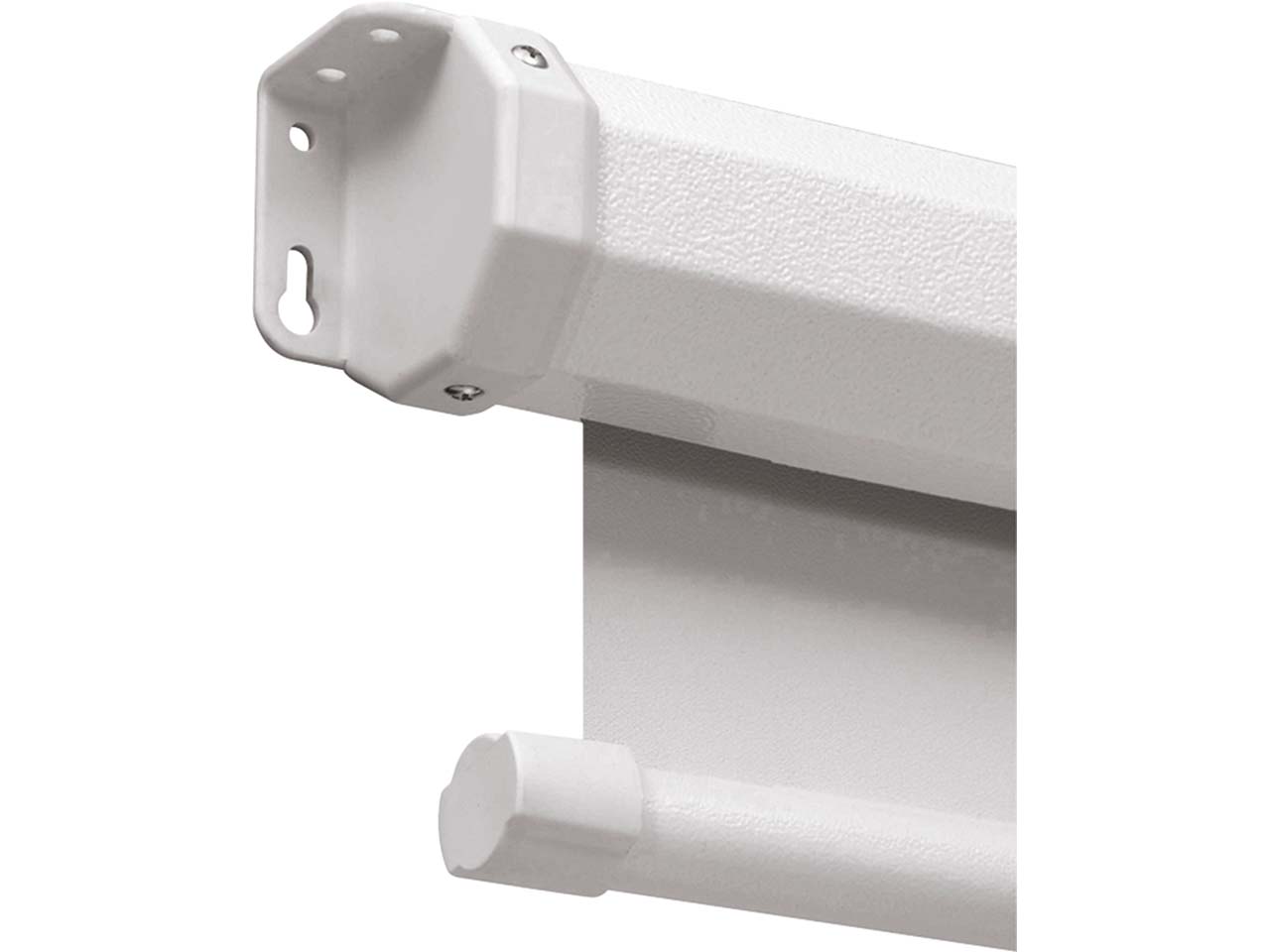 Durch die integrierten Aufhängepunkte an den Gehäuseseiten lässt sich die Magnetoplan Rollo-Leinwand leicht direkt an der Wand oder der Decke montieren. Die Wickelwelle im Inneren enthält eine Rückstellfeder und eine Stoppvorrichtung. Reißfeste Bildwandfläche aus Polyestergewebe Typ D. Technisch bedingt kommt bei allen Projektionsleinwänden PVC in der Reflektionsbeschichtung vor. B 180 x H 180 cm.