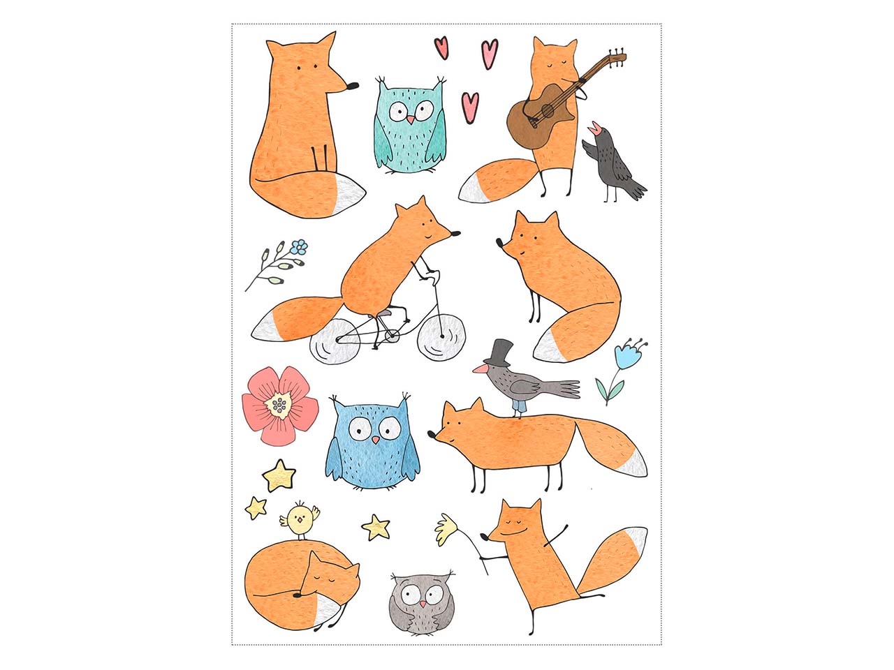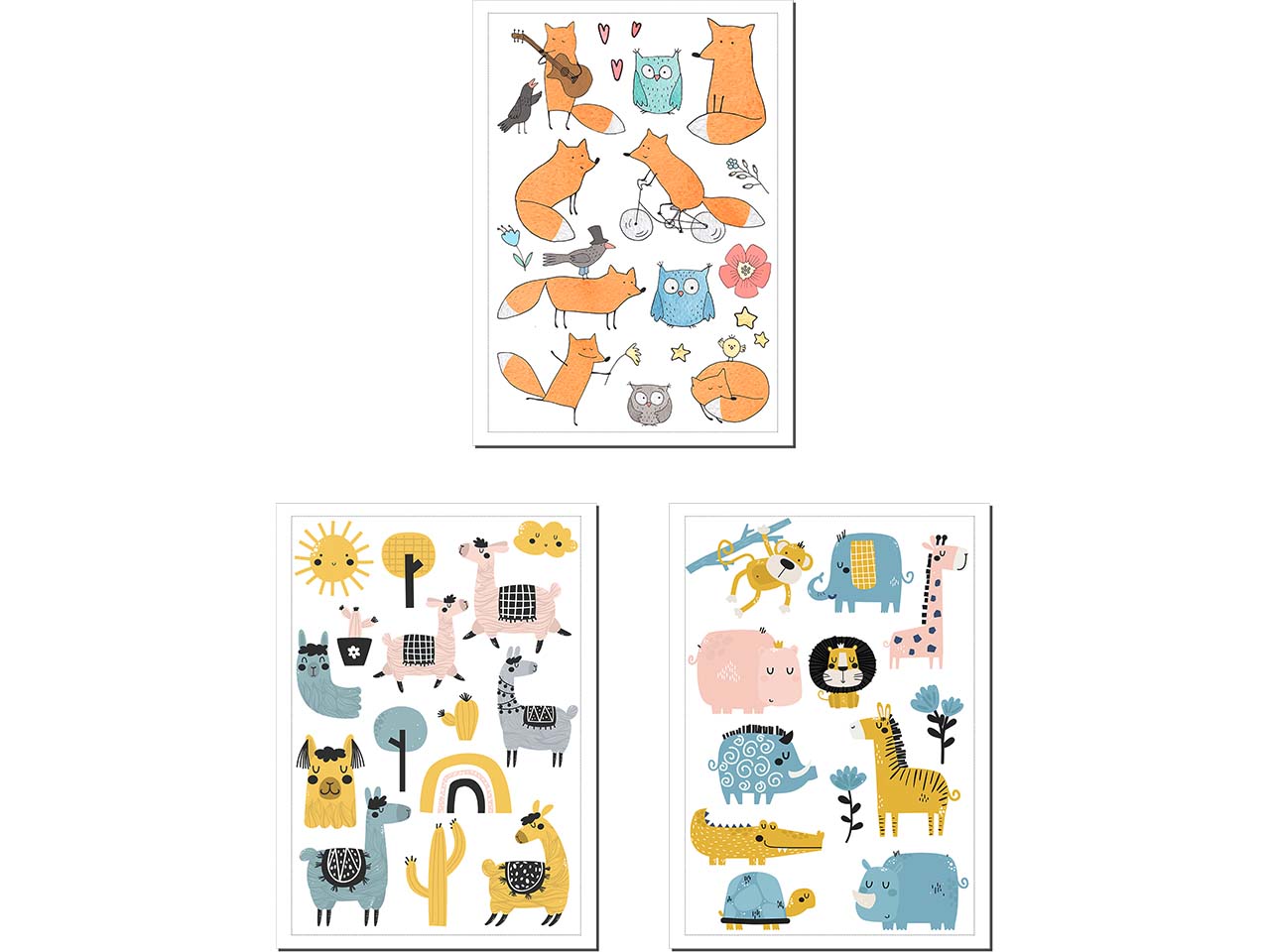 3 Tattoobögen mit niedlichen Tiermotiven