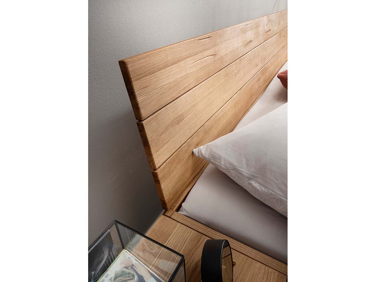 Ein Meisterwerk der Handwerkskunst: schon der Anblick des Massivholzbettes ist traumhaft. Gefertigt ist das Gestell aus massiver Wildeiche, die mit ihrer lebendigen Maserung viel Natürlichkeit mit sich bringt. Highlight sind die Holzkufen, die einerseits für viel Platz unter dem Bett sorgen, und andererseits sehr modern wirken. Das Kopfteil lädt zum Hinsetzen und Entspannen ein. Das Massivholzbett mit harmonisch abgerundeten Kanten ist in verschiedenen Größen erhältlich, sodass es für jedes Schlafzimmer passt.