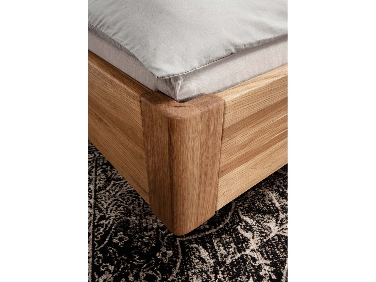 Dieses Massivholzbett bringt einfach alles mit: die lebendig gemaserter Wildeiche sorgt für harmonische Natürlichkeit, die Metallkufen unterstreichen die moderne Optik und das gepolsterte Kopfteil ist unglaublich bequem. Das Bettgestell überzeugt mit exzellenter Qualität und bereitet über viele Jahre Freude. Es ist ein Blickfänger im Schlafzimmer und fügt sich nahtlos in verschiedene Raumkonzepte ein. Durch das Kopfteil ist es auch möglich, sich im Bett hinzusetzen und zu entspannen. Das Bett ist in unterschiedlichen Größen erhältlich.