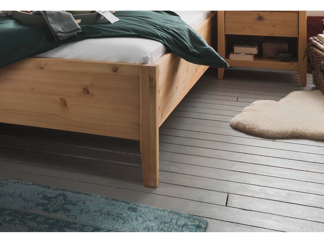 Das beim Möbelbau beliebte Kiefernholz bietet exzellente Eigenschaften: Es ist sehr leicht und der Transport somit besonders einfach. Kiefern sind in der Natur oftmals schwierigen Bedingungen ausgesetzt und daher ist ihr Holz extrem robust und stabil, was das Bettgestell außerordentlich langlebig macht.