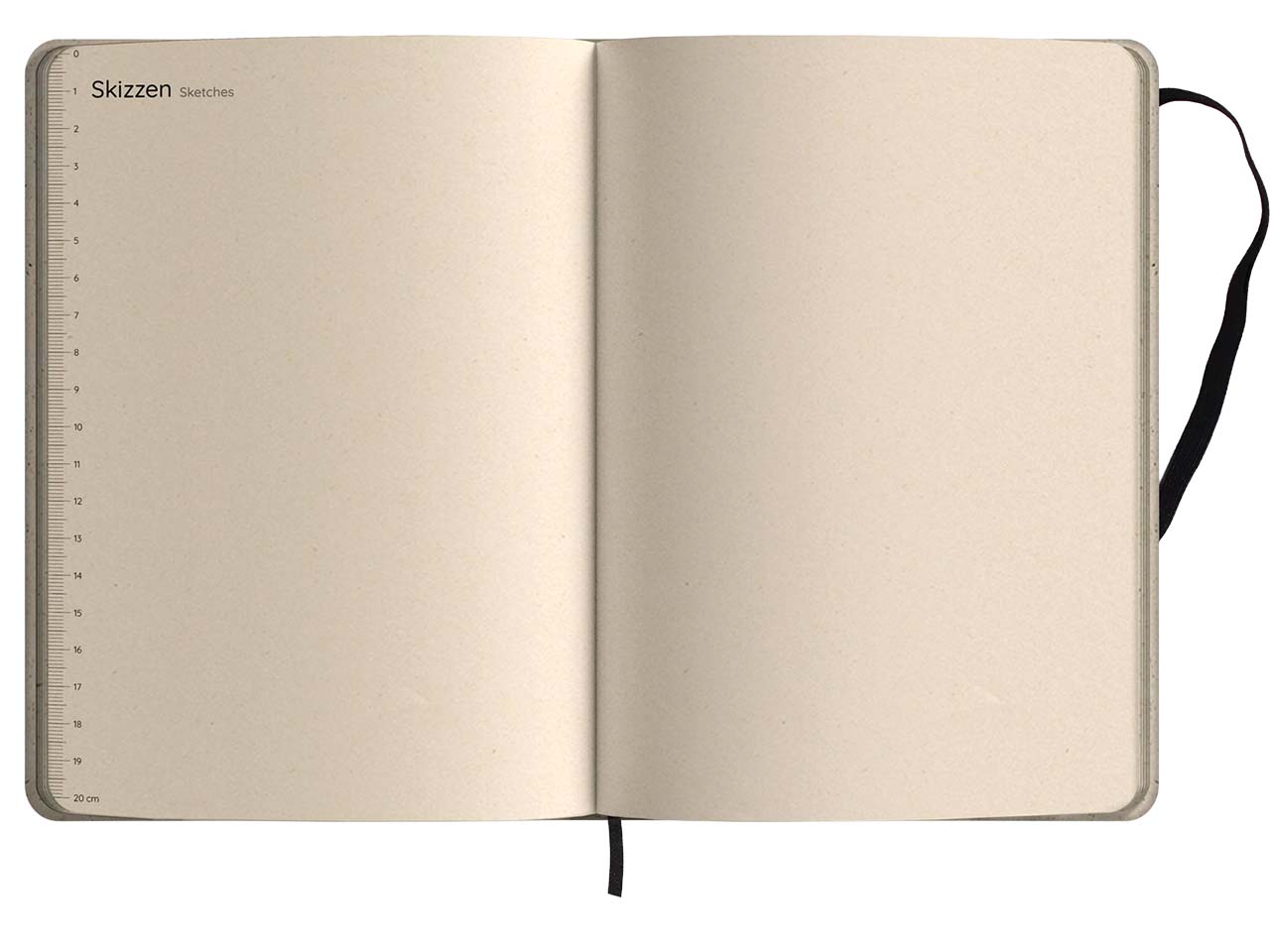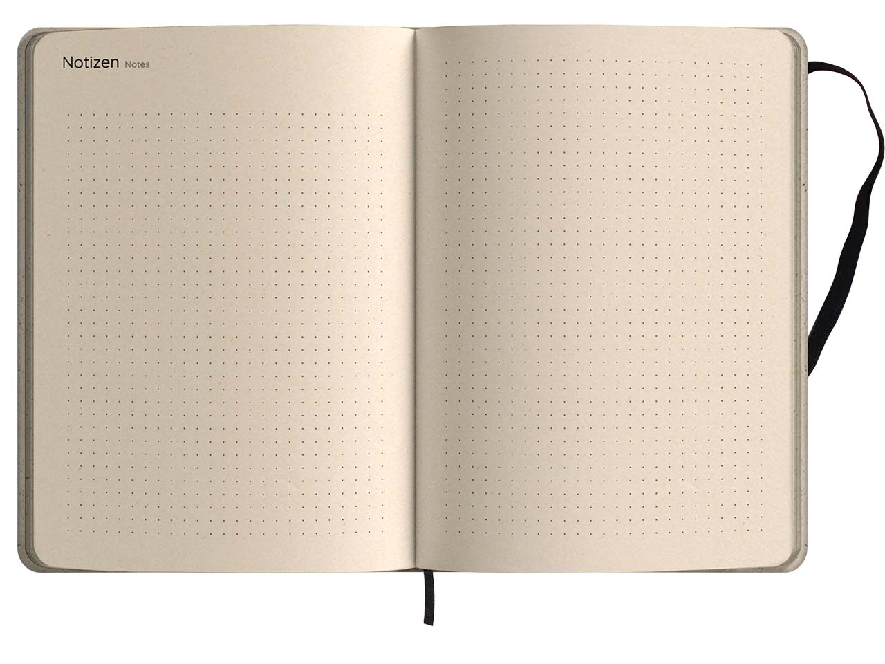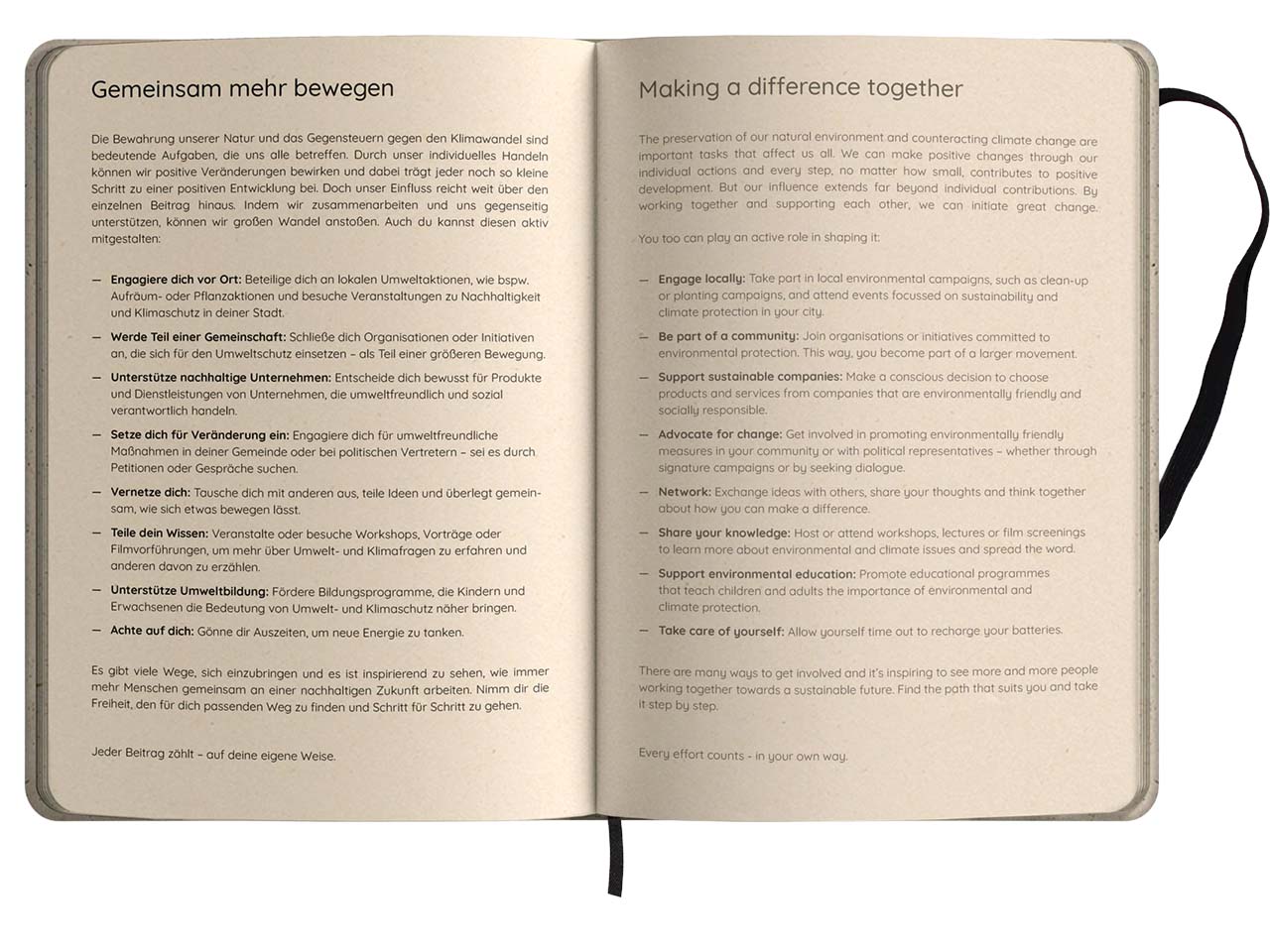 - Seiten aus 90 g/m² Süßgraspapier und Hardcover mit bis zu 50 % Grasfaseranteil