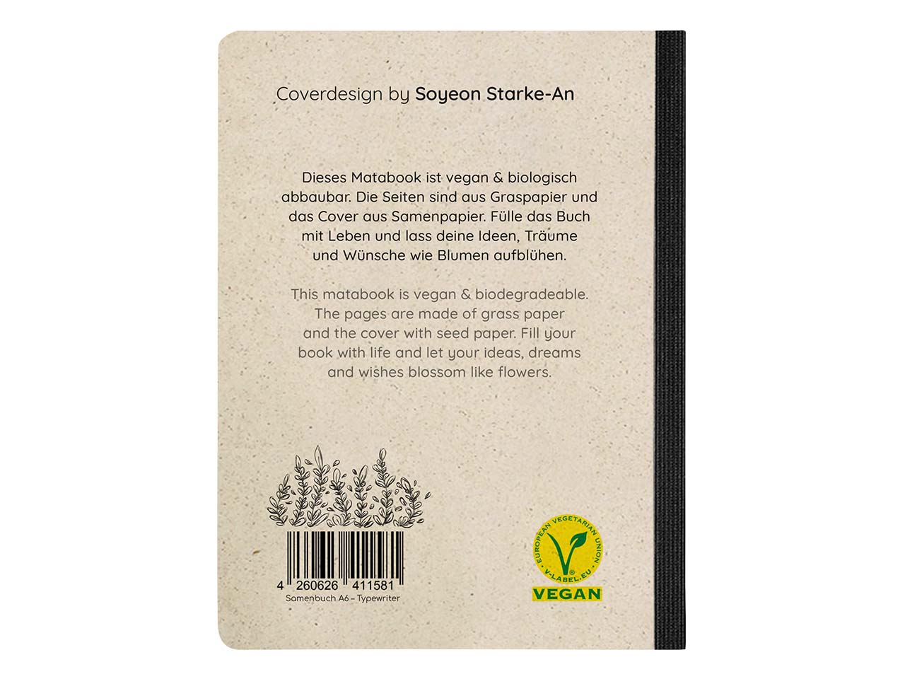 Das Notizbuch wird mit Graspapier in Deutschland hergestellt. Dieses hat einen Grasfaseranteil von bis zu 50 %. Für den Frischfaseranteil werden ausschließlich Fasern von Bäumen aus verantwortungsvoller, FSC-zertifizierter Forstwirtschaft verwendet. Bei Gras handelt es sich um einen natürlichen Rohstoff, der in Deutschland in großen Mengen zur Verfügung steht und auch immer wieder nachwächst. Während des Aberntens wird das Gras nicht beschädigt oder gar zerstört. Das verwendete Gras wird in der Sonne zu Stroh getrocknet, bevor es in der Papierfabrik verarbeitet wird. Dafür werden pro Tonne nur rund 2 Liter Wasser benötigt – viel weniger als bei Frischfaserpapier! Auf diese Weise werden Ressourcen wie Wasser geschont. Es wird ausschließlich wasserbasierter Klebstoff verwendet. Durch die besondere Herstellung ist das Buch nach der Nutzung biologisch abbaubar. Das Cover aus Samenpapier kann nach der Nutzung eingepflanzt werden. Das Papier besteht aus Wildblumensamen und Baumwollresten, sodass dadurch Blumen aus der Erde sprießen.