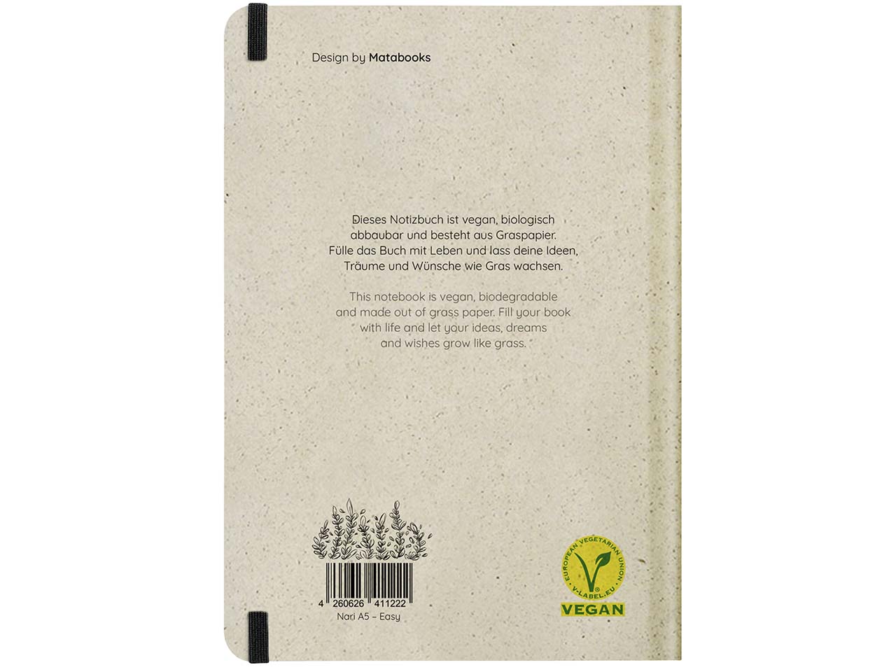 Matabooks Notizbuch "Nari" aus Graspapier, liniert, mit Gummiband
