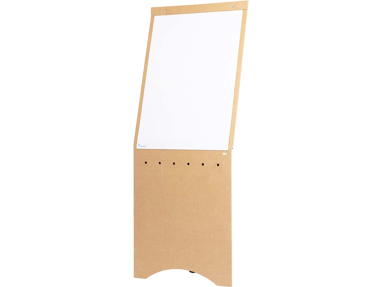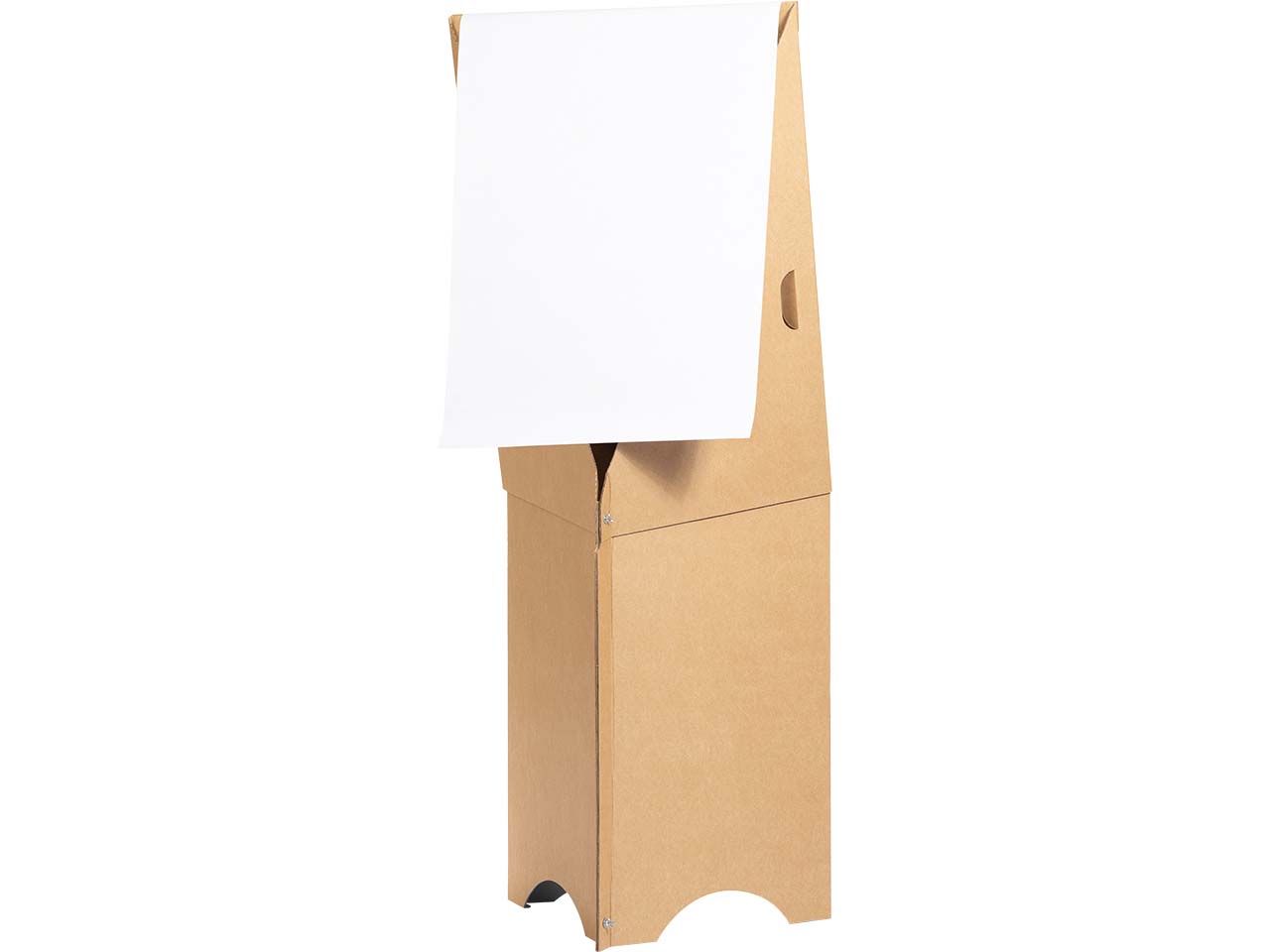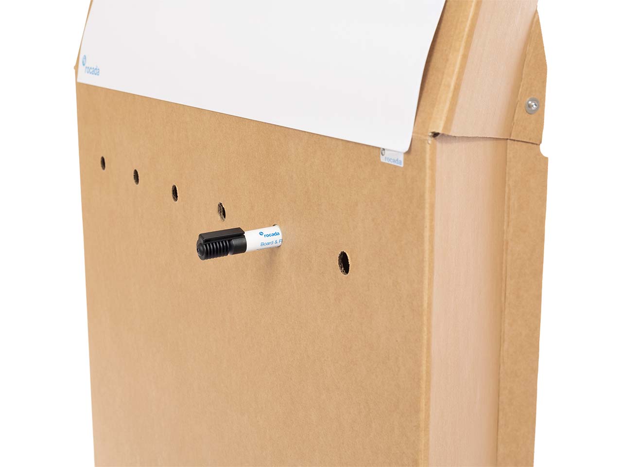 Flipcharts sind in Büros, Workshops und Seminaren ein unverzichtbares Zubehör. Das Flipchart von MAUL zeichnet sich durch seine Herstellung aus recyceltem Karton aus – dadurch ist es nachhaltiger als viele herkömmliche Produkte. Ein mehrfaches Auf- und Abbauen stellt ebenso wie die platzsparende Unterbringung bei Nichtnutzung kein Problem dar. Dabei ist der Transport dank der seitlichen Griffe und des leichten Gewichts selbst im aufgestellten Zustand kinderleicht. Das stabile Flipchart verfügt über Löcher als Design-Element und zur Aufbewahrung von Markern. Die Befestigung erfolgt mit Flügelschrauben. Diese sind in der Lieferung enthalten. B 70 x T 43 x H 178 cm.