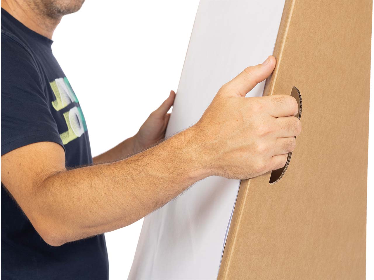 Als Material wird recycelter Karton eingesetzt. Recycelte Kartonprodukte sind im Vergleich zu solchen aus Primärfasern ressourcenschonender und benötigen in der Produktion weniger Wasser und Energie. Dabei bleiben die Gebrauchseigenschaften erhalten! Recyclingkartonist genauso stabil und nutzbar wie Karton aus Frischfaserherstellung. Gleichzeitig reduziert die Verwendung von Recyclingmaterial den Abfall.