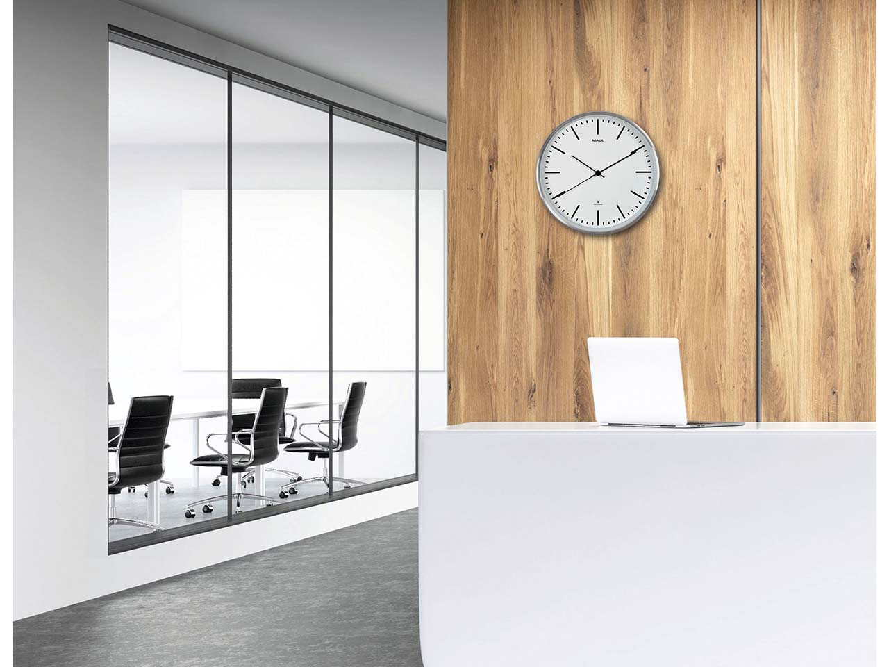Elegant, klassisch und doch modern präsentiert sich die geräuscharme Maul Funk-Wanduhr "MAULfly 30RC". Sie ist stabil verarbeitet, hat einen schmalen Rahmen aus gebürstetem Aluminium und ist mit Mineralglas abgedeckt. Durch die schmalen, dezenten Balken ist die Uhrzeit selbst in größeren Räumen stets gut erkennbar. Die Funkuhr synchronisiert automatisch mit dem DCF77-Signal und stellt selbstständig auf Sommer- und Winterzeit um. Perfekt für moderne Büros, repräsentative Räumlichkeiten und designorientierte Anwender. Inkl. 1,5 V AA-Batterie.