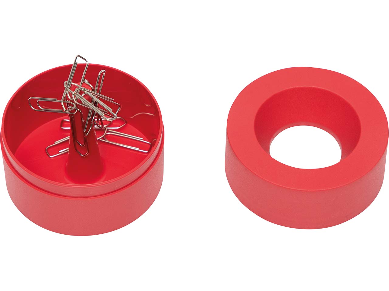 Dank dieses praktischen Schreibtischaccessoires sind Büroklammern immer sofort griffbereit! Der mit dem Blauen Engel ausgezeichnete Klammerspender aus über 85 % wiederaufbereitetem Post-Consumer-Kunststoff wird in Deutschland hergestellt und zeichnet sich durch exzellente Funktionalität aus. Der Zentralmagnet hält die Büroklammern, wo sie sein sollen. Es entsteht kein Chaos auf dem Schreibtisch. Der Klammerspender hat ein großes Fassungsvermögen und wird mit 15 Klammern inklusive geliefert. Zum einfachen Befüllen muss nur das Oberteil abgenommen werden.