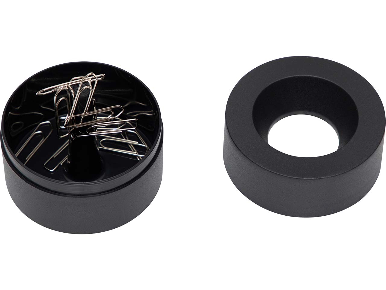 Dank dieses praktischen Schreibtischaccessoires sind Büroklammern immer sofort griffbereit! Der mit dem Blauen Engel ausgezeichnete Klammerspender aus über 85 % wiederaufbereitetem Post-Consumer-Kunststoff wird in Deutschland hergestellt und zeichnet sich durch exzellente Funktionalität aus. Der Zentralmagnet hält die Büroklammern, wo sie sein sollen. Es entsteht kein Chaos auf dem Schreibtisch. Der Klammerspender hat ein großes Fassungsvermögen und wird mit 15 Klammern inklusive geliefert. Zum einfachen Befüllen muss nur das Oberteil abgenommen werden.