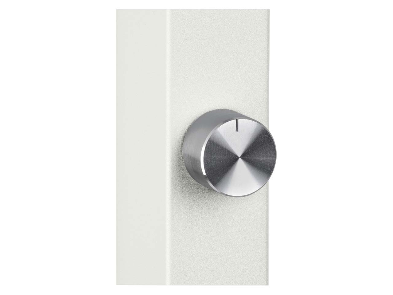 Die Stehleuchte "MAULjaval" bietet unabhängig von natürlicher oder künstlicher Umgebungsbeleuchtung eine hohe Lichtqualität. Die Leuchte verfügt über einen stufenlos einstellbaren Dimmer, sodass die Beleuchtung ganz nach individuellem Empfinden eingestellt werden kann. Es ist indirekte Raumbeleuchtung oder direktes Licht für die Arbeitsfläche möglich. Die Abstrahlung beträgt 50 % nach unten und 50 % nach oben. Über den Drehknopf an der Säule gestaltet sich die Bedienung der Stehleuchte sehr einfach. Der stabile, massive Standfuß aus Stahl hat eine ausgeschnittene Fußplatte, die sich um ein Tischbein herum positionieren lässt. Dadurch ist die Leuchte platzsparend.