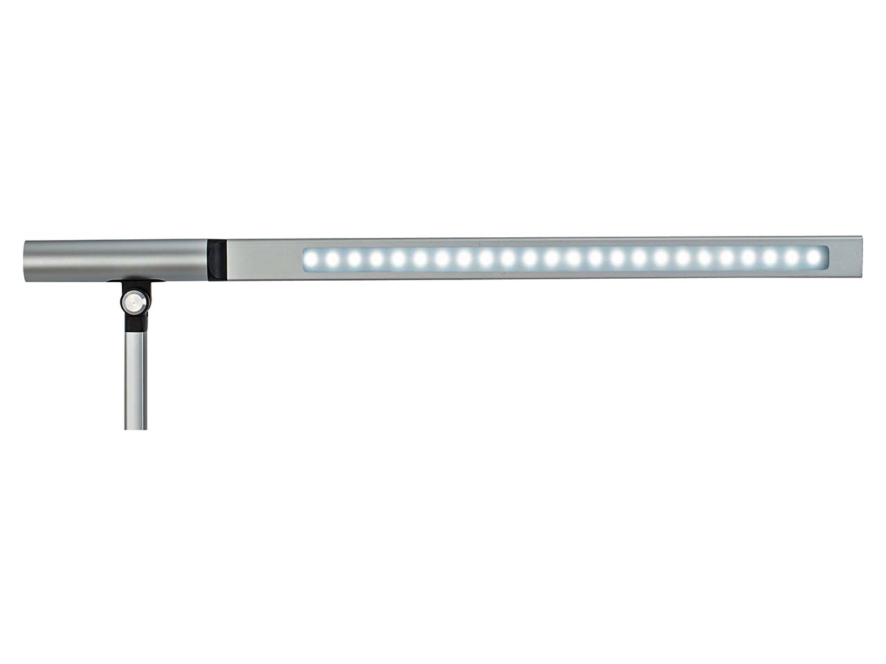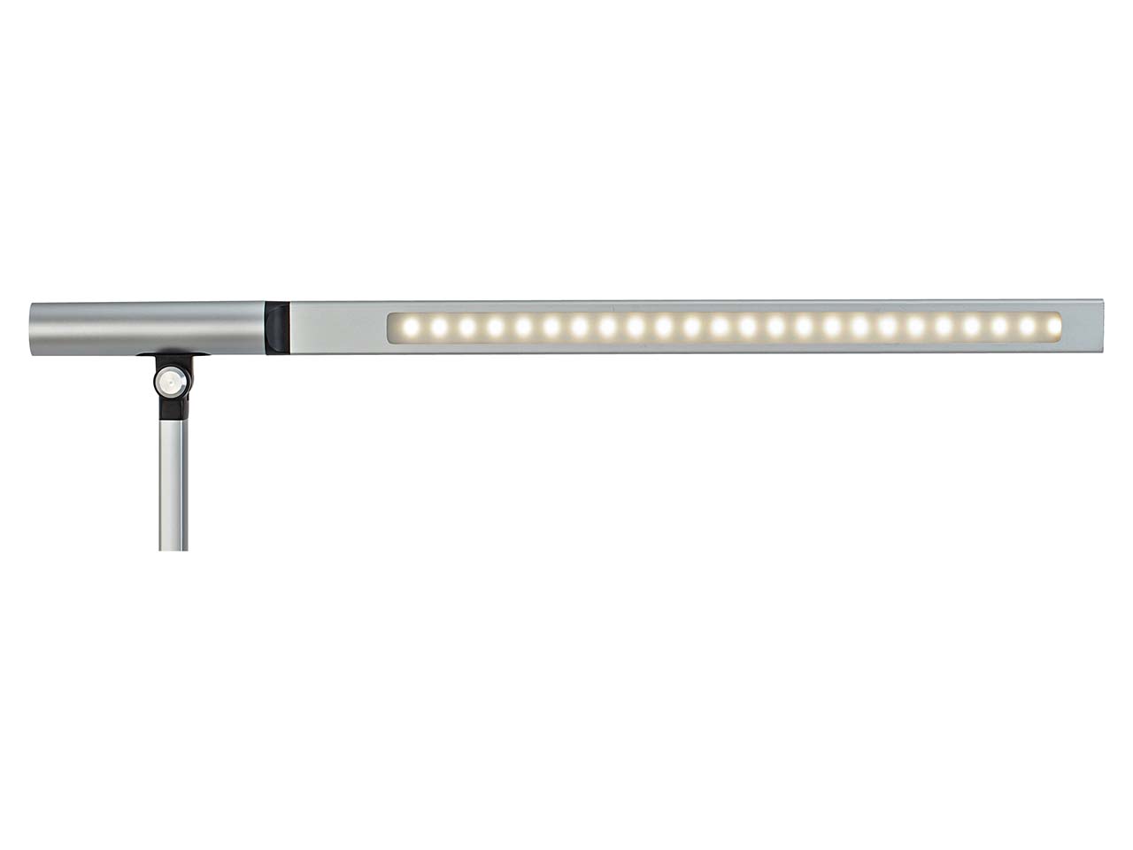 Die in klarer Formsprache designte LED-Tischleuchte ist dank modernster LED-Technik sparsam im Verbrauch. Die 48 fest verbauten LEDs teilen sich in 24 warmweiße und 24 kaltweiße. Je nach Tageszeit und Befinden z.B. für erhöhte Aufmerksamkeit und Leistungsfähigkeit lassen sich Farbtemperatur und Beleuchtungsstärke einstellen. Über den integrierten USB Typ-A Anschluss lassen sich mobile Geräte aufladen. Die Tischleuchte erreicht 1520 Lux Beleuchtungsstärke bei 35 cm Abstand. Der Ein-/Aus-Schalter befindet sich für eine einfache Betätigung am beschwerten Fuß. Die Lichtverteilung ist homogen.