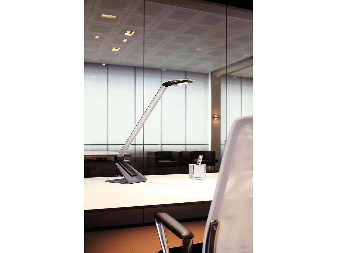 Leuchten Sie Ihren Schreibtisch jetzt noch besser aus. Die MAUL LED-Tischleuchte zeigt sich im Design sehr modern und kompakt. So findet sie selbst auf kleineren Flächen perfekt Platz. Die 48 fest verbauten SMD-LEDs zeichnen sich durch den neuesten Standard aus und sorgen dementsprechend für überragendes, neutralweißes Licht. Die Tischleuchte wirkt schonend für die Augen, wenn Sie lernen oder arbeiten. Dafür sind die homogene Lichtverteilung und der optimierte Blendschutz verantwortlich, die durch das Hightech-Streuscheibenmaterial zustande kommen. Neben der exzellenten Funktionalität punktet die LED-Leuchte auch mit sparsamem Verbrauch: Im Vergleich zu Glühlampen verbraucht sie rund 80 % weniger Energie!