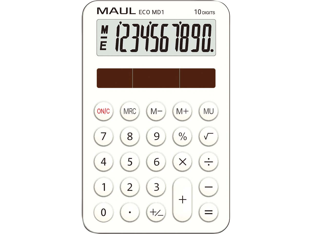 Der mit dem Blauen Engel ausgezeichnete MAUL Taschenrechner ist ideal für tägliche Berechnungen in Schule und Büro. Mit seinem Solarbetrieb ist er stets einsatzbereit, selbst bei einer Lichtintensität von nur 50 Lux. Hergestellt aus 80 % recyceltem Kunststoff, präsentiert er sich in einem modernen und eleganten Design mit einem flachen, einzeiligen LCD-Display. Die gummierten Tasten sorgen für eine komfortable Eingabe, während praktische Funktionen wie die Abschaltautomatik, Prozentrechnung, die Vorzeichenwechsel-Taste, Tausenderunterteilung und Wurzelberechnung eine einfache und effiziente Nutzung gewährleisten. B 76 x T 120 x H 12 mm.