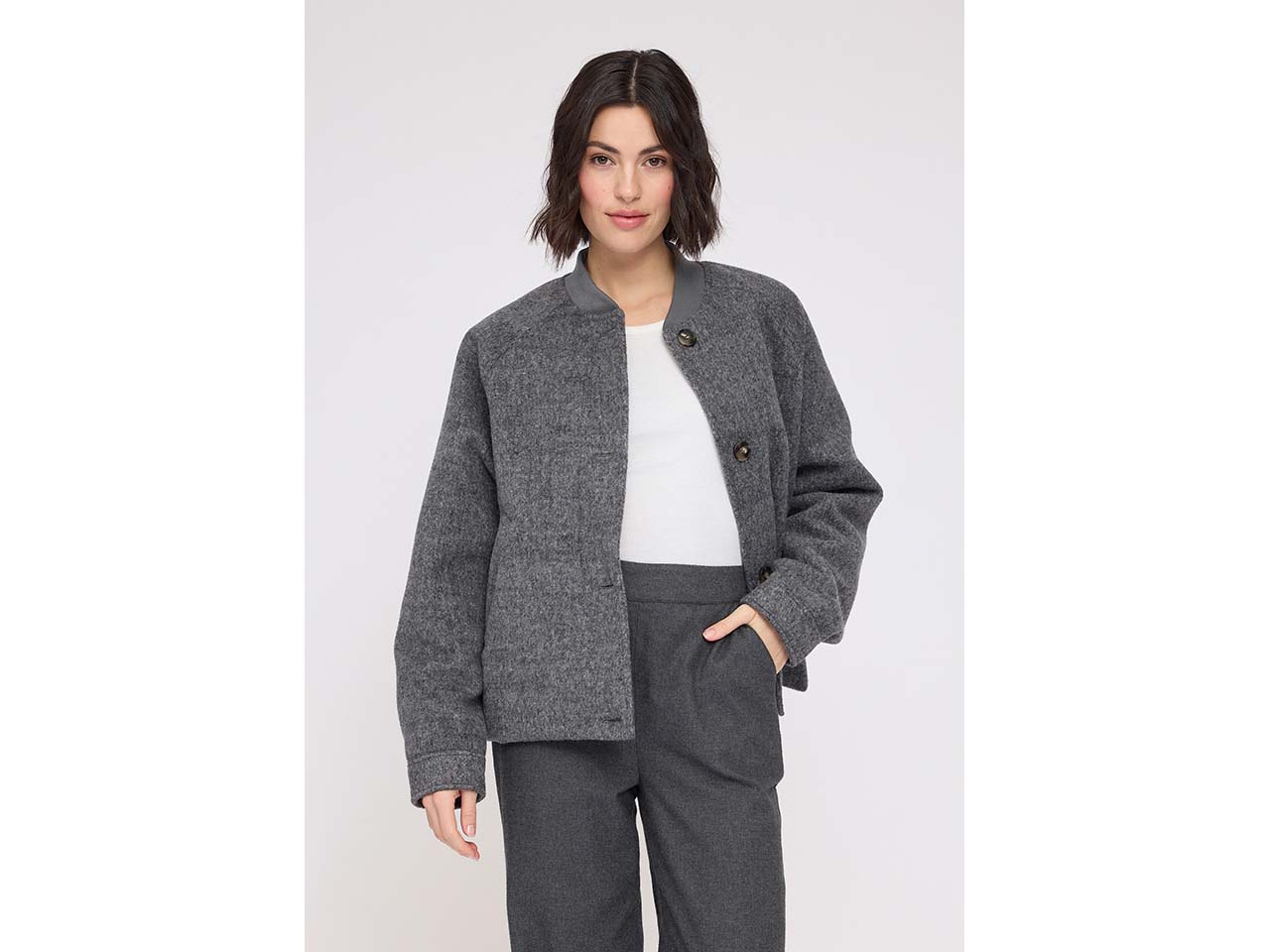 MAZINE Damen-Bomberjacke "Vegan Wool" mit Knöpfen